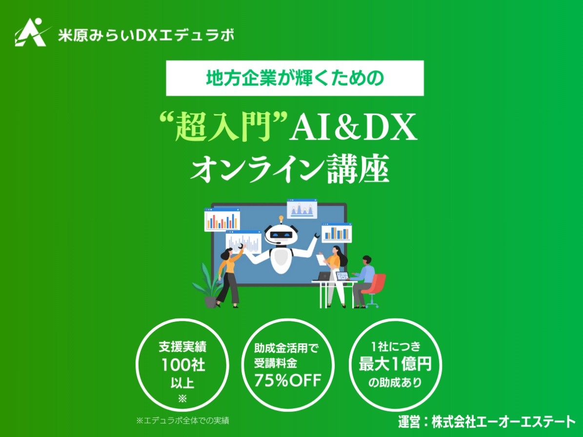 株式会社テーオーエステート(滋賀県米原市)は、地域Ai総研株式会社(東京都港区)と連携し、DX(デジタルトランスフォーメーション)およびAI研修サービス「米原みらいDXエデュラボ」を開始いたします。まずは自社グループ企業向けに研修を提供し、その成果を基に、より広く地域企業や全国企業に向けてサービスを拡大していく予定です。