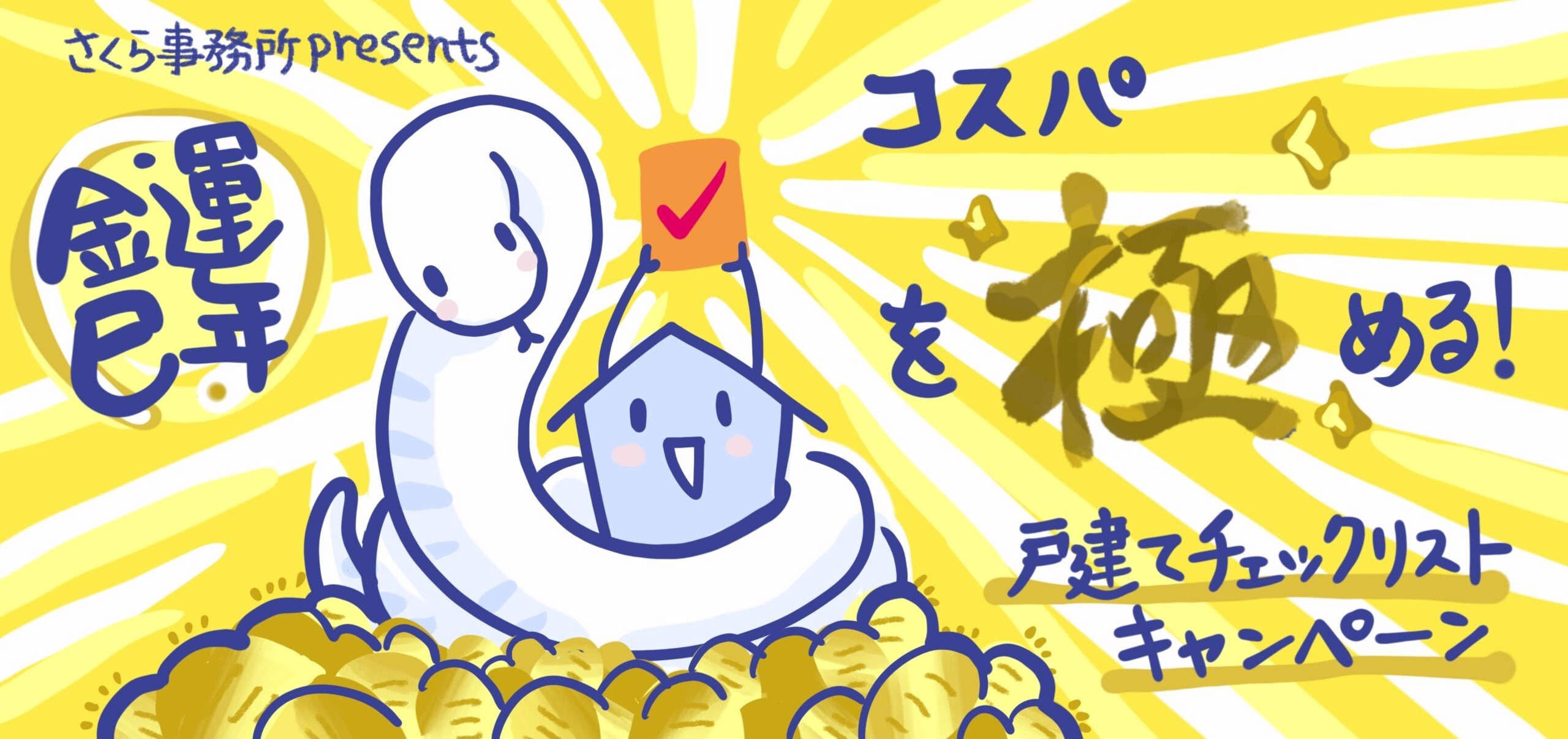 向けコンサルティングを行う“不動産の達人”株式会社さくら事務所(東京都渋谷区/社長:大西倫加)は、1月20日から3月31日までの期間「金運巳年 コスパを極める!戸建てチェックリストキャンペーン」を開始します。このキャンペーンでは、さくら事務所のメルマガを登録いただくことで、家造りに役立つチェックリストをダウンロードすることが可能になります。