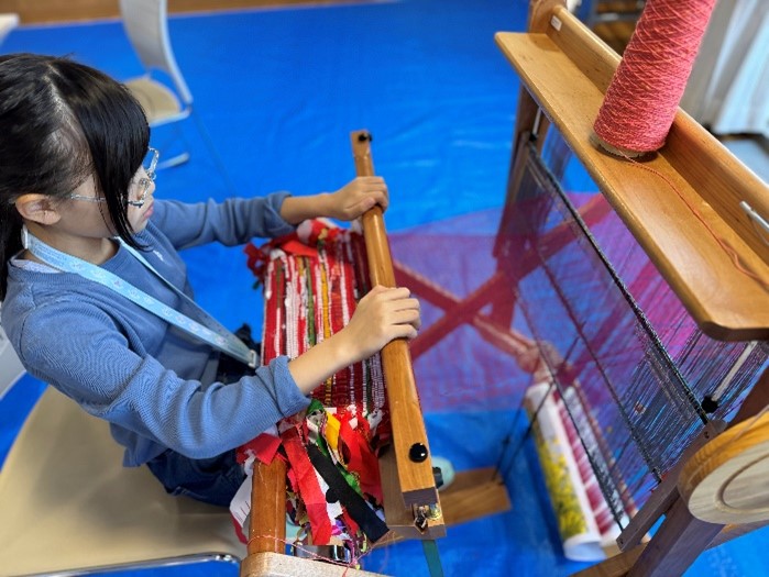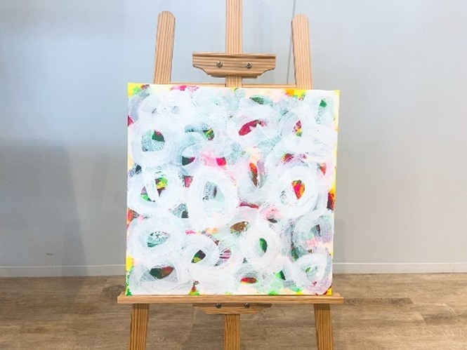 古布を裂いて横糸として織り込む手法を用いながら、studioFLATのパラアーティストが自由な感性で織り上げ、反物を制作します。絵画については廃棄化粧品を一部用いて制作しています。
