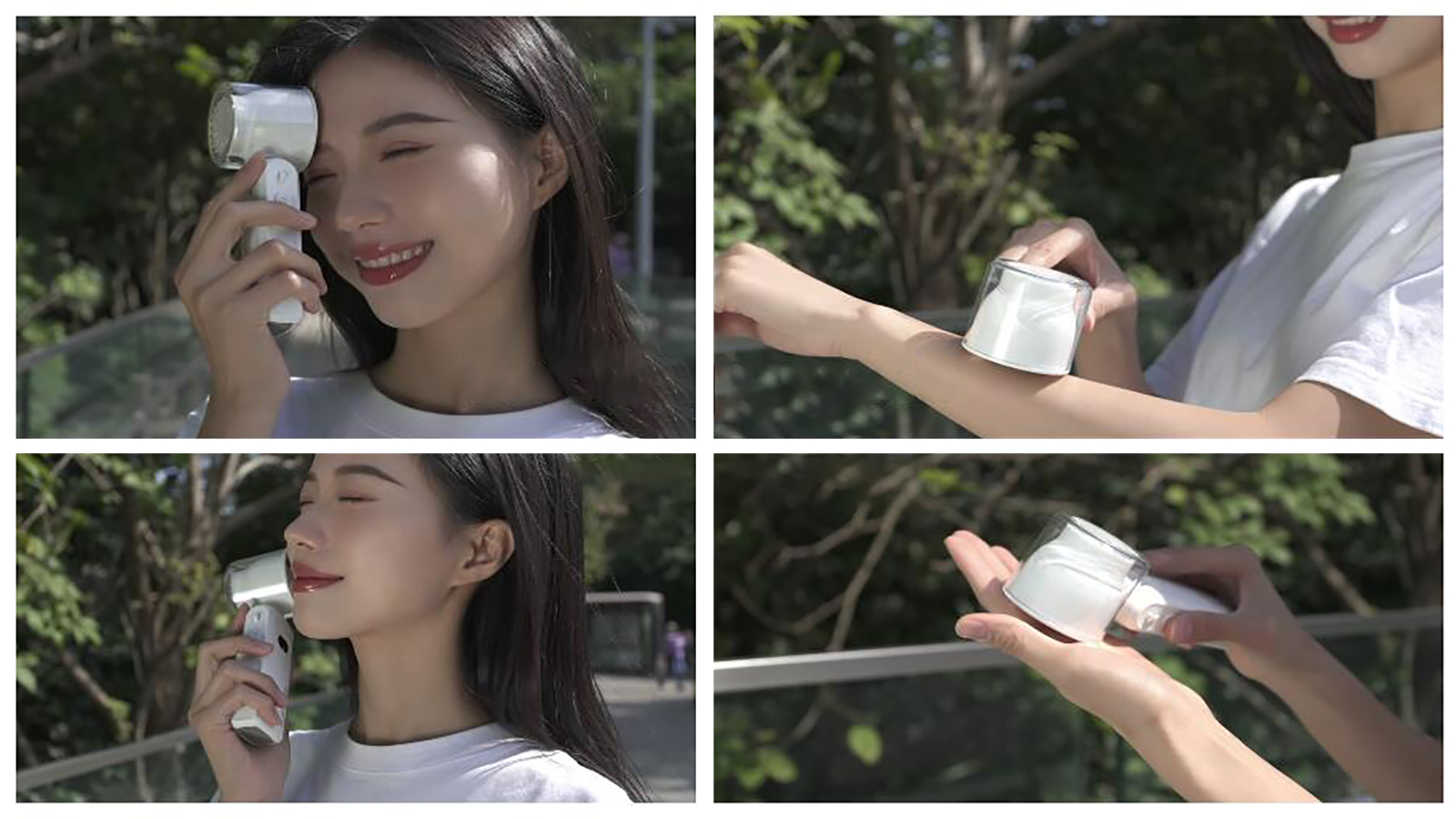 冷却プレートを頬やおでこ、手首、首元に当てると、瞬時にひんやりとした冷感が広がり、肌をクールダウン。