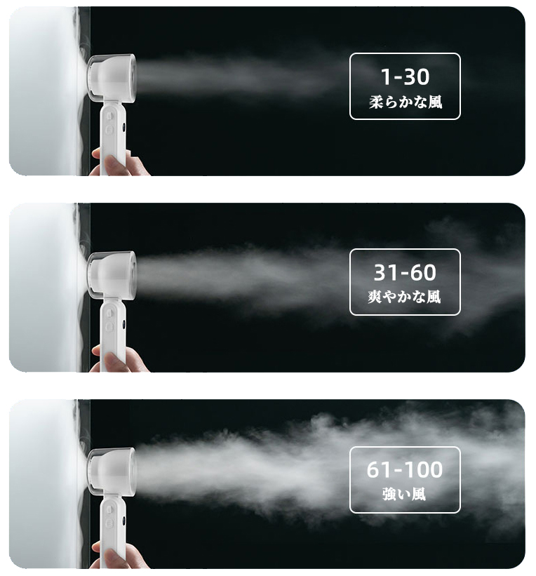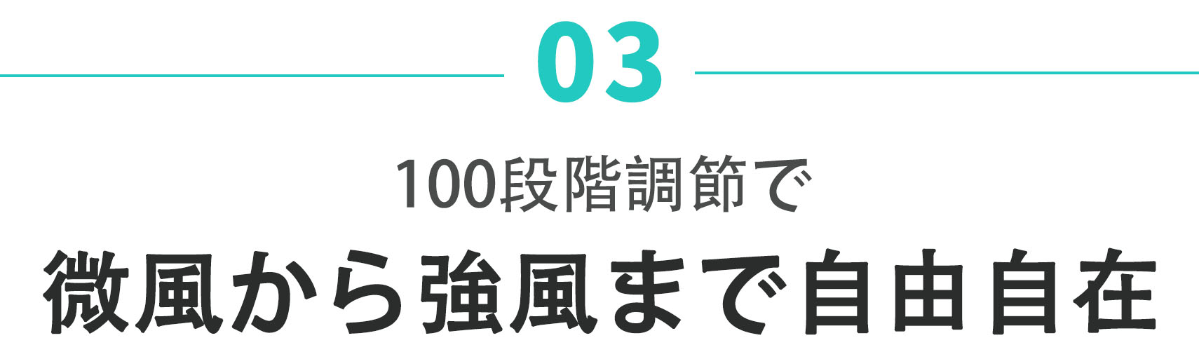 1-100段階風量調節により、自然に近い優しい風からパワフルな超強風まで細かく切り替えることが可能。