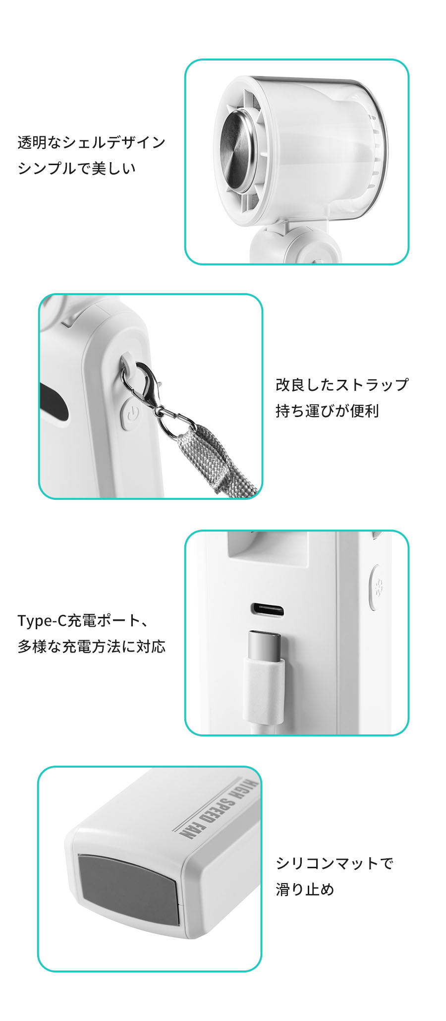 扇風機本体*1、ストラップ*1、Type-Cケーブル*1、取扱説明書*1