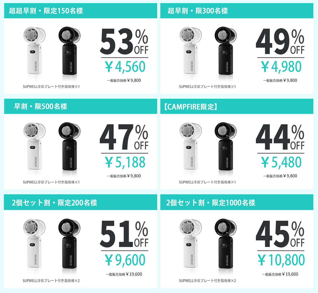 「SUPWELL冷却プレート付き扇風機」は、進化したブラシレスモーターを採用し、送風機能に加え冷却プレートを搭載し、肌に触れるだけで瞬時に爽快なクールダウンが可能です。デジタル表示画面で風量を1-100無段階に細かく調節可能。3600mAhの大容量バッテリーで、最長11.5時間の連続使用が可能です。