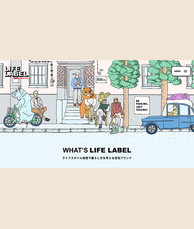 LIFE LABELは、“Hello,new fun.” をブランドタグラインとして、2017年からスタートした住宅ブランドです。 2025年1月より「NICE LIFE.」 をスローガンに掲げ、身近な人にNICEとエールを送り合うポジティブな空気を伝播させていきます。また、様々なブランドとコラボレーションし規格住宅デザインを開発。FC事業として、全国160社以上のLIFE LABEL取扱店にてブランドを展開しています。