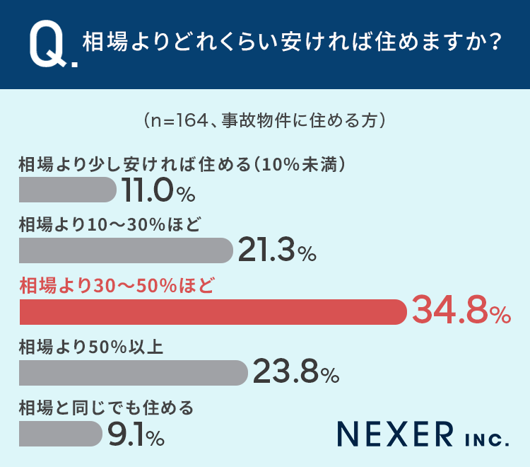 ■34.8%が「相場より30~50%ほど」安ければ事故物件に住めると回答