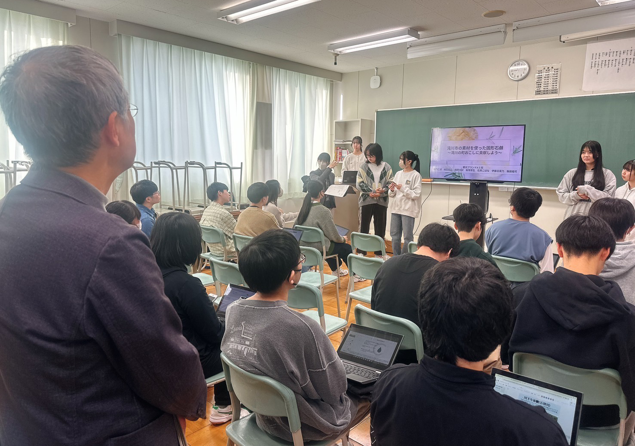 生徒たちが「街の住みここち」調査データを基に課題研究を行い、街の活性化対策を発表