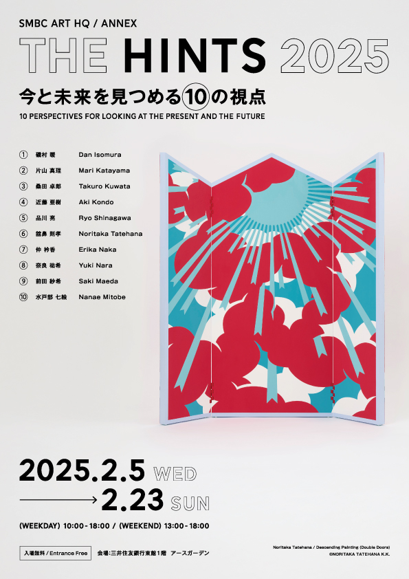 東京・大手町の三井住友銀行東館1F アース・ガーデンにて、2月5日(水)~23日(日)までの19日間、ビジネスパーソンに向けて日本人作家の応援とアートの魅力を広げる展覧会「The Hints 2025―今と未来を見つめる10の視点」を開催いたします。