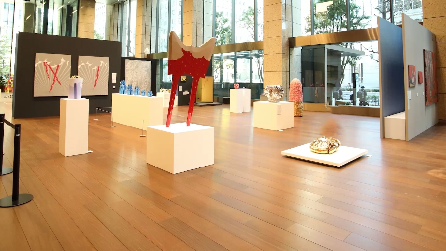 今回のメインターゲットは、アート作品を好んで購入されている富裕層の他に、都心のオフィスで働くビジネスパーソンです。そこで、東京・大手町にある三井住友銀行東館1Fという、多くの人が行き交うロビー空間を会場に選びました。ガラス張りのためビルの外から中の様子が見やすく、どなたでも気軽に立ち寄れる場所です。ここ数年、既成概念にとらわれない自由な思考法である「アート思考」がビジネスパーソンの間でも広がりつつあります。現代アートからビジネスのヒントを得ていただくとともに、アートを身近に感じていただきたいと考えています。また、写真撮影やSNSへの投稿も歓迎です。SNSで拡散することで、より多くの方にアートへの関心を持ってもらいたいという思いからです。