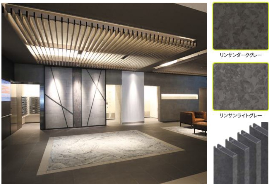 また、非住宅シーンにおすすめ商品として、「エバーアートウッドⓇルーバー」に、建築のトレンドカラーとなりつつある「リン酸亜鉛メッキ調カラー」を2色追加しました。落ち着いた濃淡のあるカラーが、重厚感のある内・外装空間を演出します。
