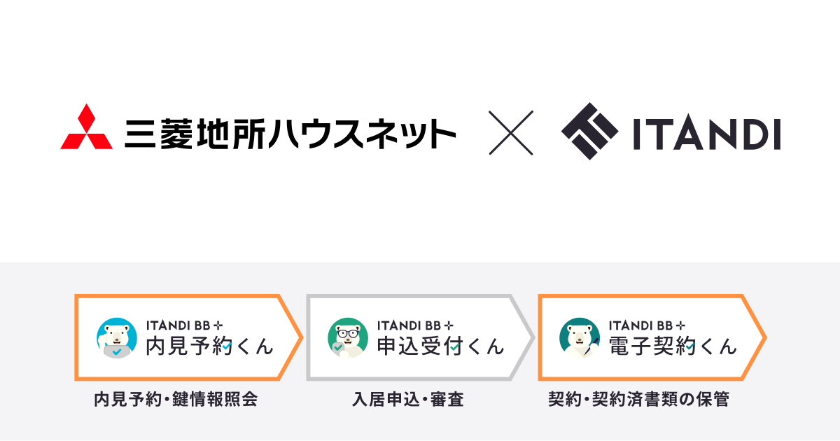 テクノロジーで不動産取引をなめらかにするイタンジ株式会社(以下「イタンジ」)は、2025年2月より、三菱地所グループで不動産の売買仲介・賃貸管理・賃貸仲介サービスを行う三菱地所ハウスネット株式会社(以下「三菱地所ハウスネット」)に、イタンジが提供する賃貸住宅の内見予約受付システム「内見予約くん」、不動産関連電子契約システム「電子契約くん」を導入いたしました。