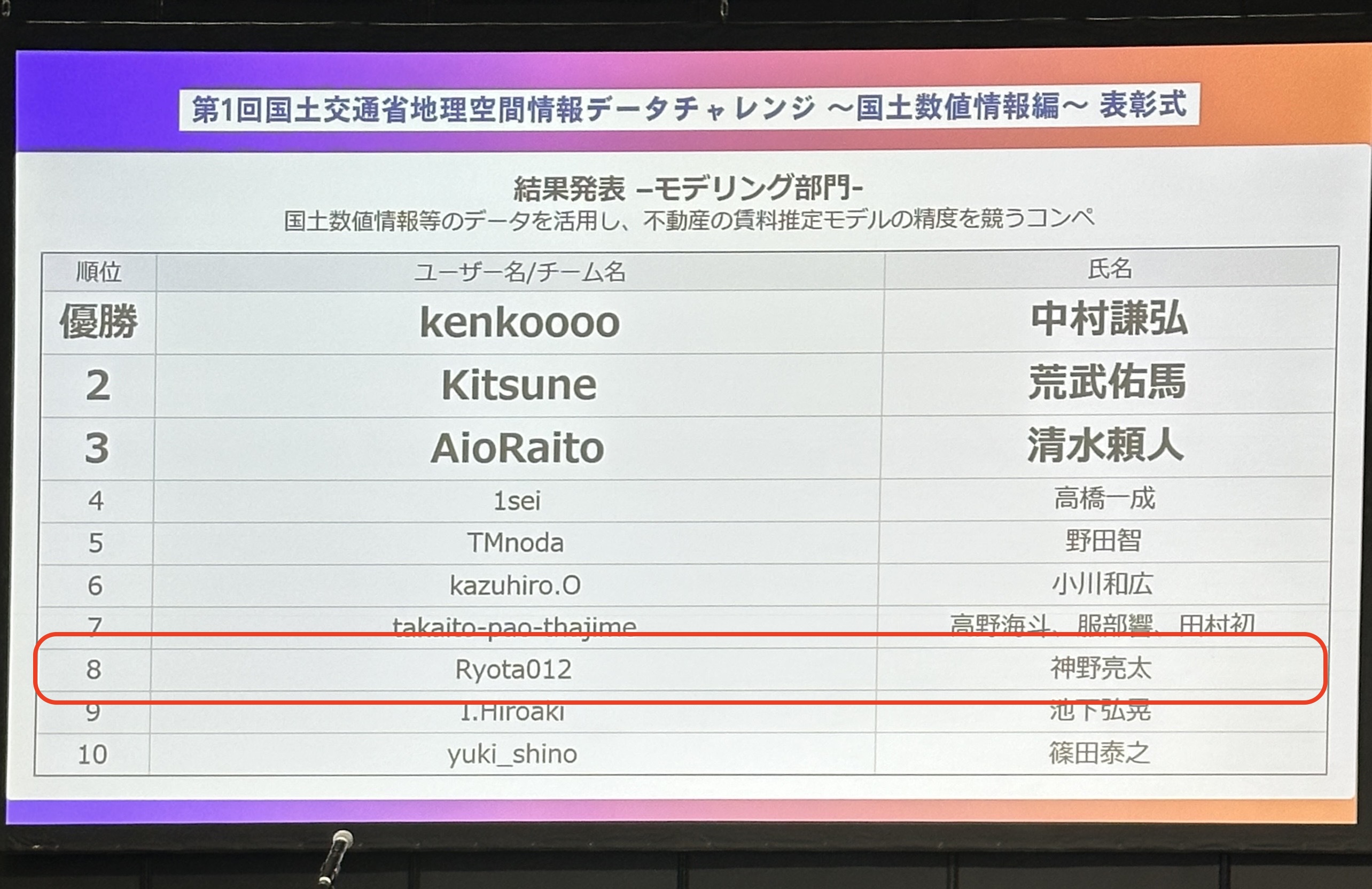 エステートテクノロジーズのデータサイエンティストが、国土交通省主催のデータ分析コンペティションにて全国1,532名の中から8位入賞を受賞