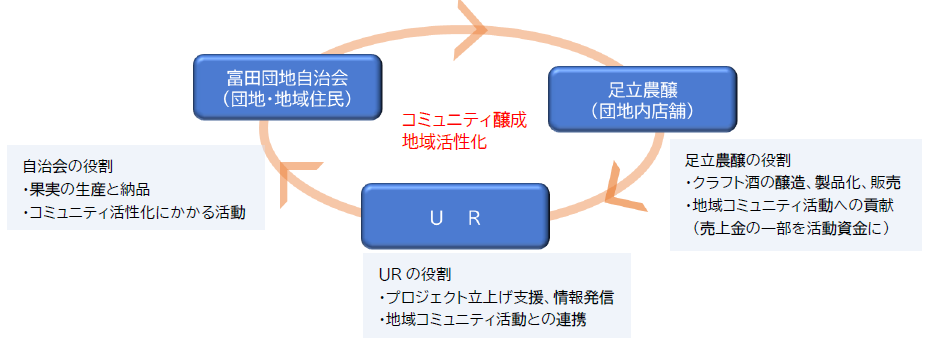 地域住民がコミュニティ活動の一環として、丹精こめて育ててきた果実が団地内の酒蔵で商品となり、団地クラフト酒として多くの方にご愛用・認知されることで、良好かつ継続的な地域活性化サイクルを生み出すことを期待しています。