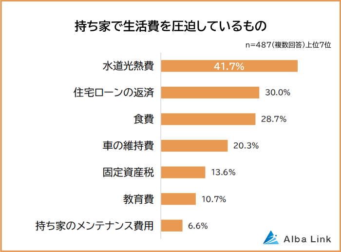 今回、株式会社AlbaLink( https://albalink.co.jp/)が運営する訳あり物件買取ナビ( https://albalink.co.jp/realestate/)は、持ち家にお住まいの487人を対象に「持ち家の生活費」についてアンケート調査を実施しました。