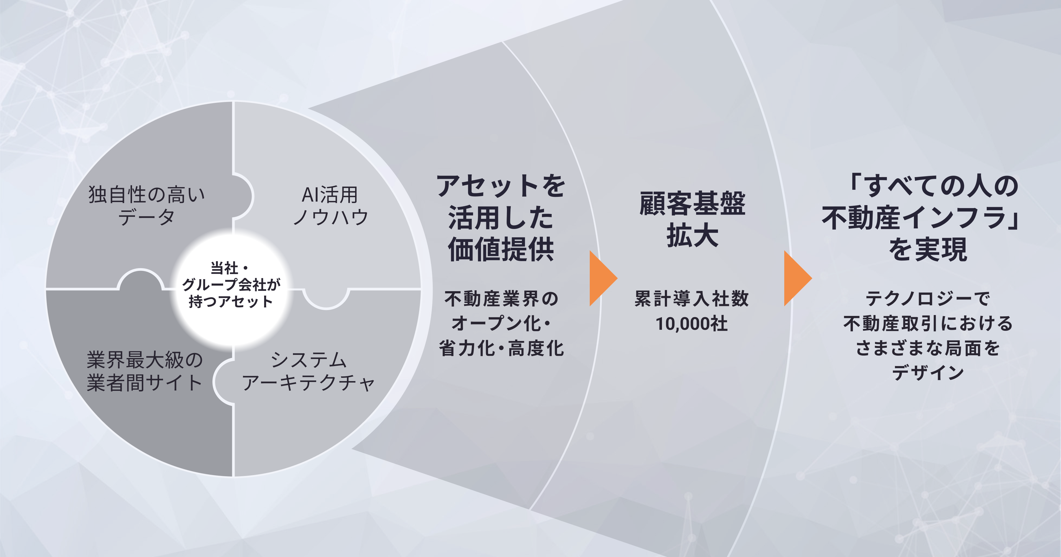 当社はこれらのアセットを活用し、エンドユーザーおよび不動産会社のなめらかな取引体験と業務体験を実現するため、下記の通り取り組んでまいります。