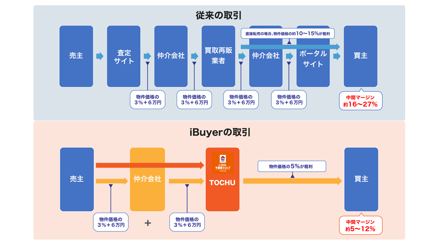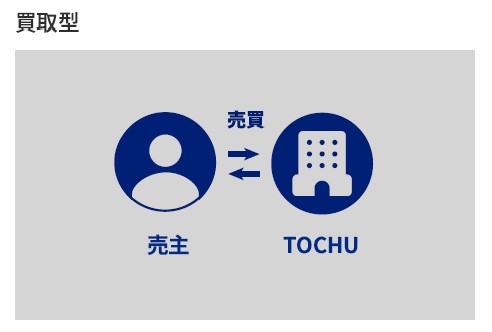 中間マージンや手数料を抑えることが可能な「TOCHU iBuyer」を活用し、売却をご希望のお客さまには買取型と仲介型をご用意。TOCHUが確実で迅速なお取引をバックアップいたします。