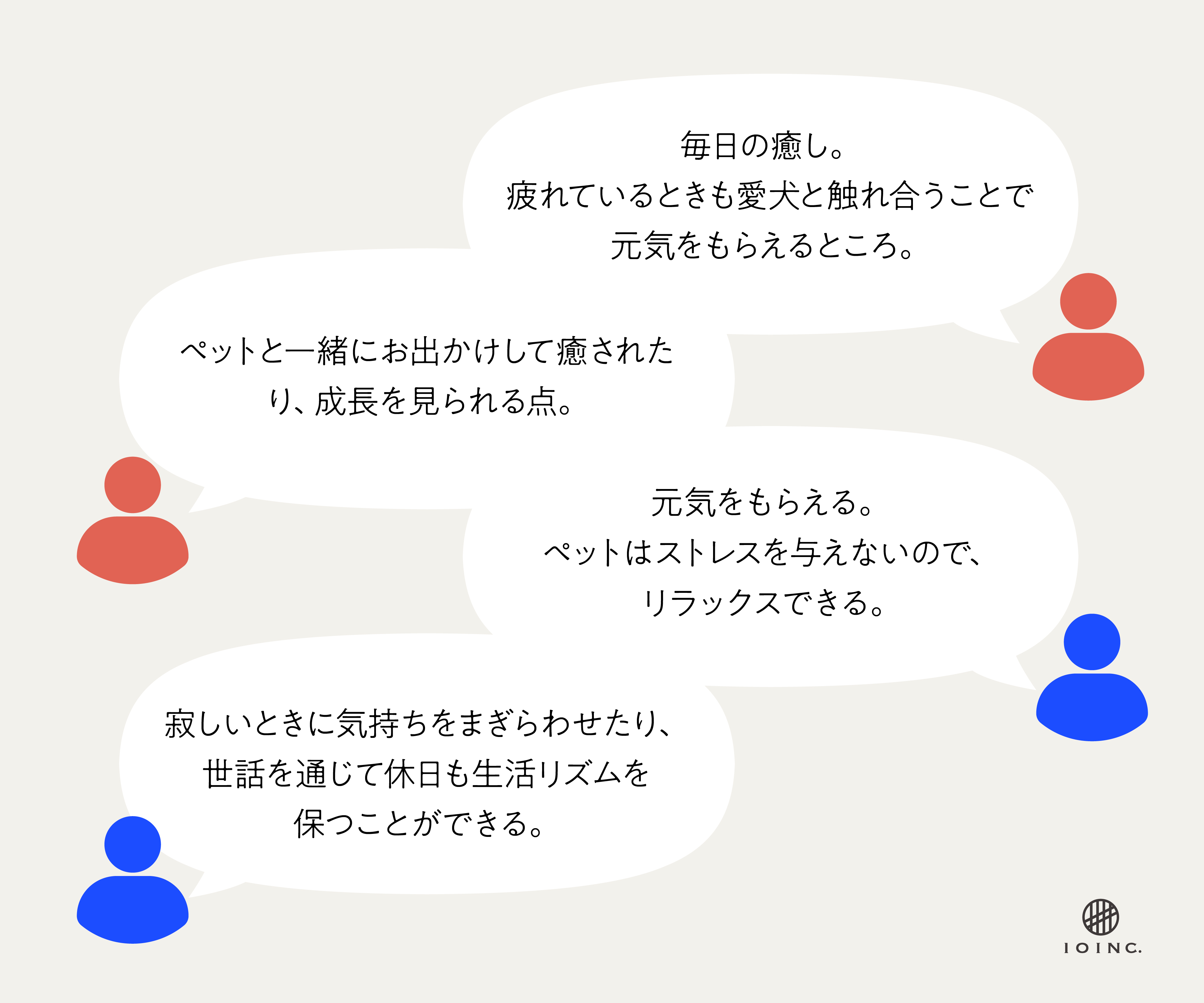 「ペットを飼う良さ」として“癒し”が多く見られました。お世話や触れ合いを通じて、癒しや元気がもらえたり自身の健康的な生活の一助になることも期待されているようです。