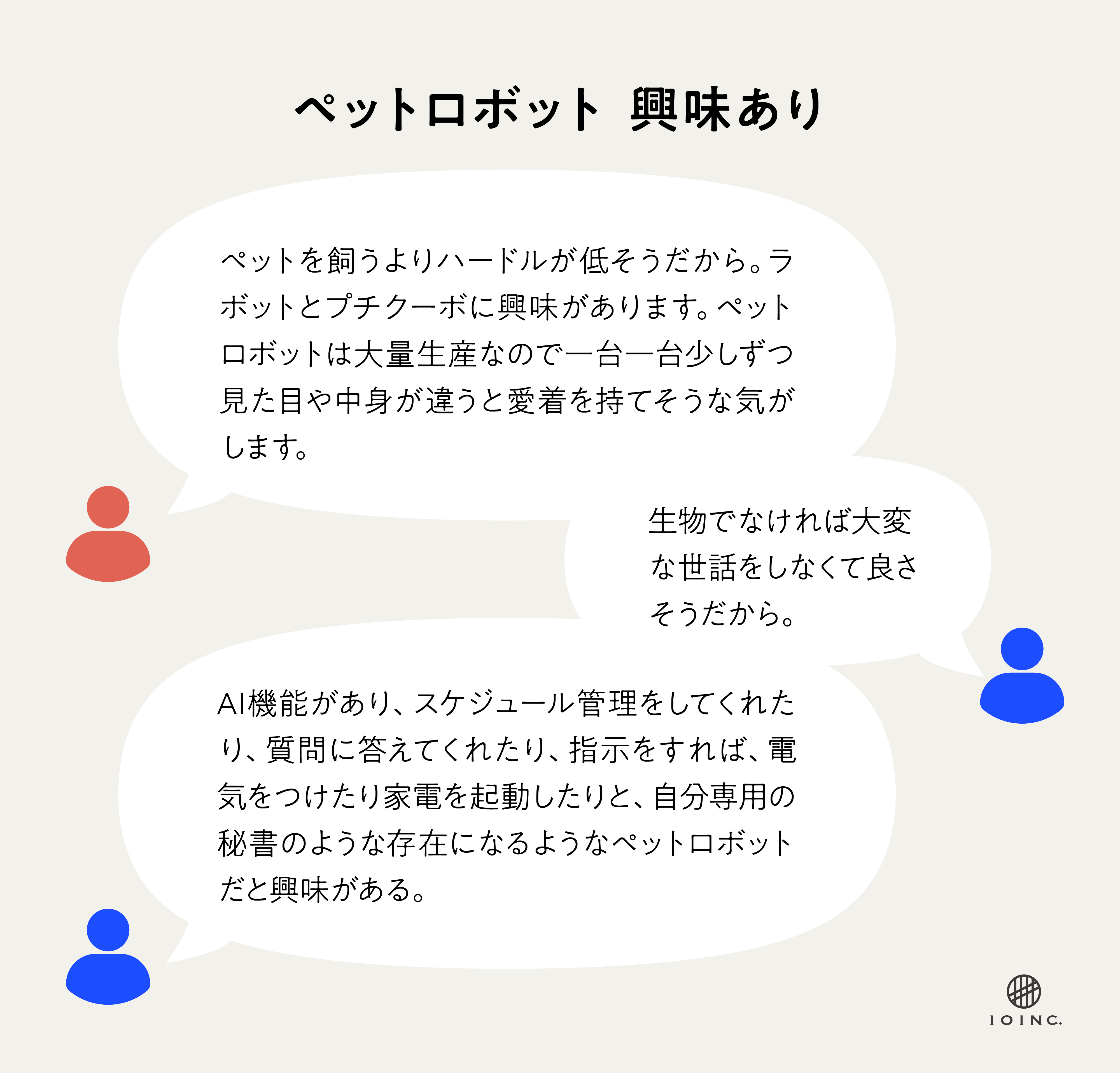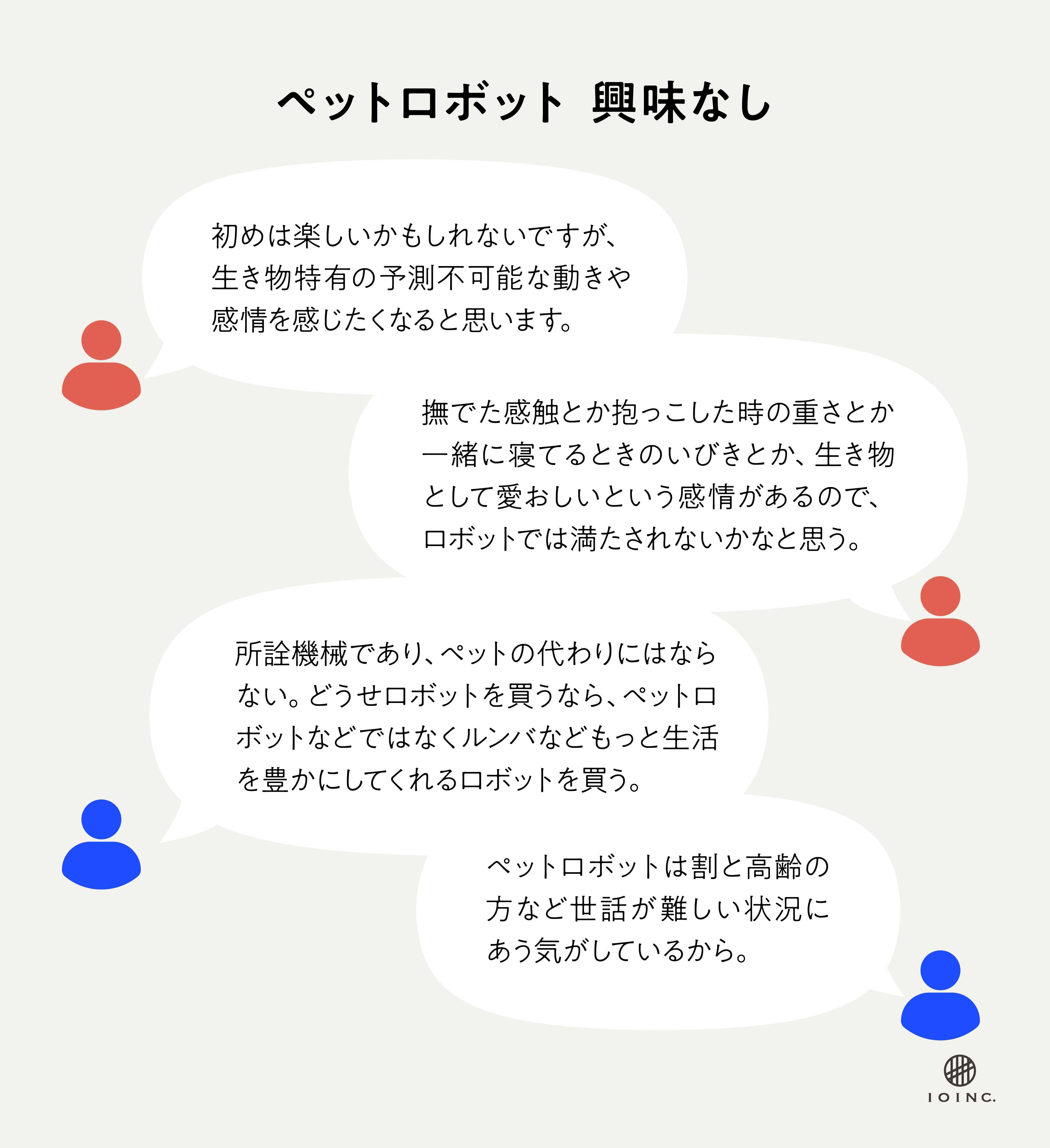 やはり“生き物”である暖かさや予測不能な動きなど、現在のロボットにはない点がペットに求められているようです。一方で、“ロボットであること”を最大限に活かし、日常生活をサポートしてくれる機能搭載を期待する声もみられました。