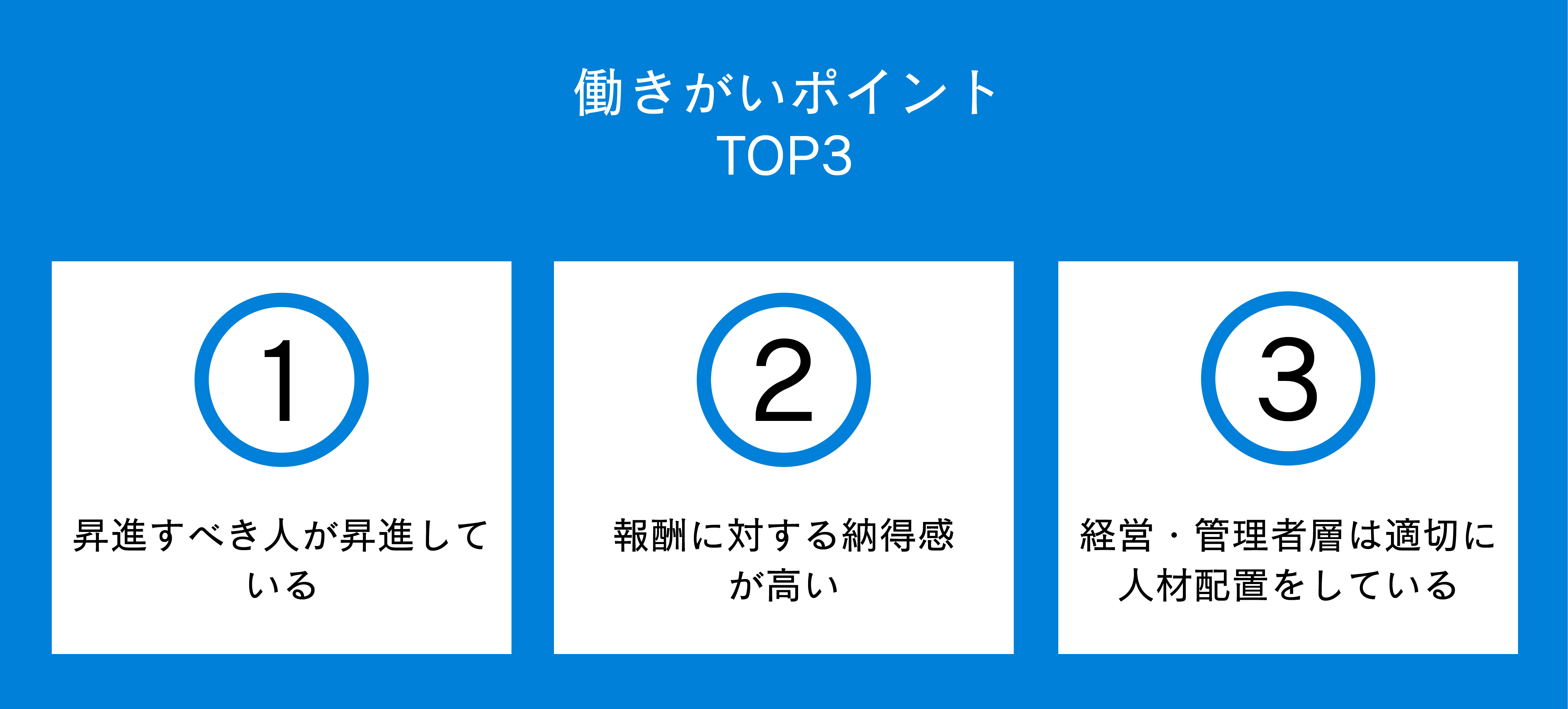 当社はベスト100社のうち、中規模部門(従業員数100-999人)において16位にランクインし、昨年の同部門27位から大幅に順位を上げることができました。当社が特に評価された働きがいのポイントは、「昇進すべき人が昇進している」、「報酬に対する納得感が高い」、「経理・管理者層は適切に人材配置をしている」の3点です。