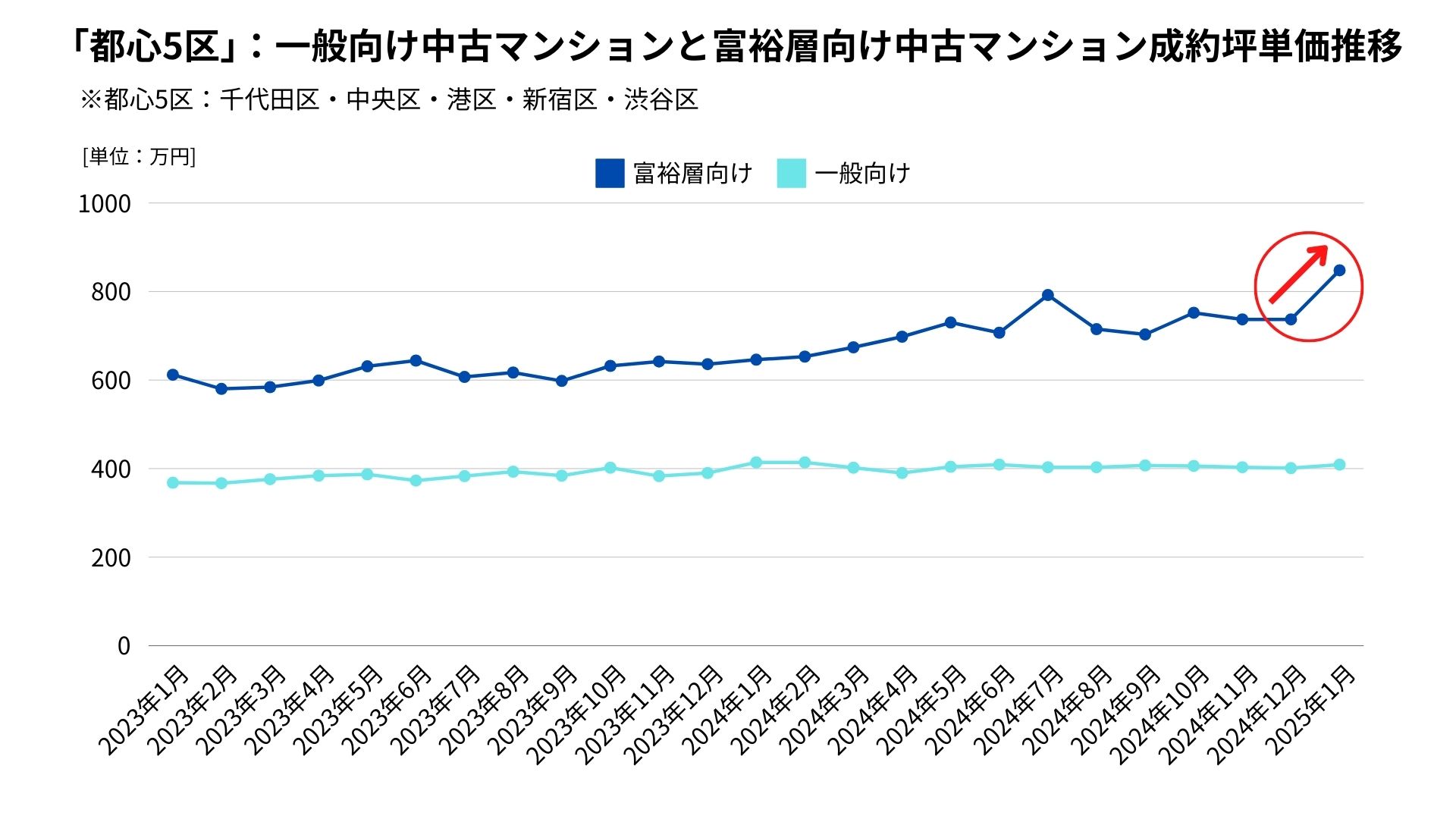 グラフ3:「都心5区」一般向け・富裕層向け中古マンション成約坪単価推移