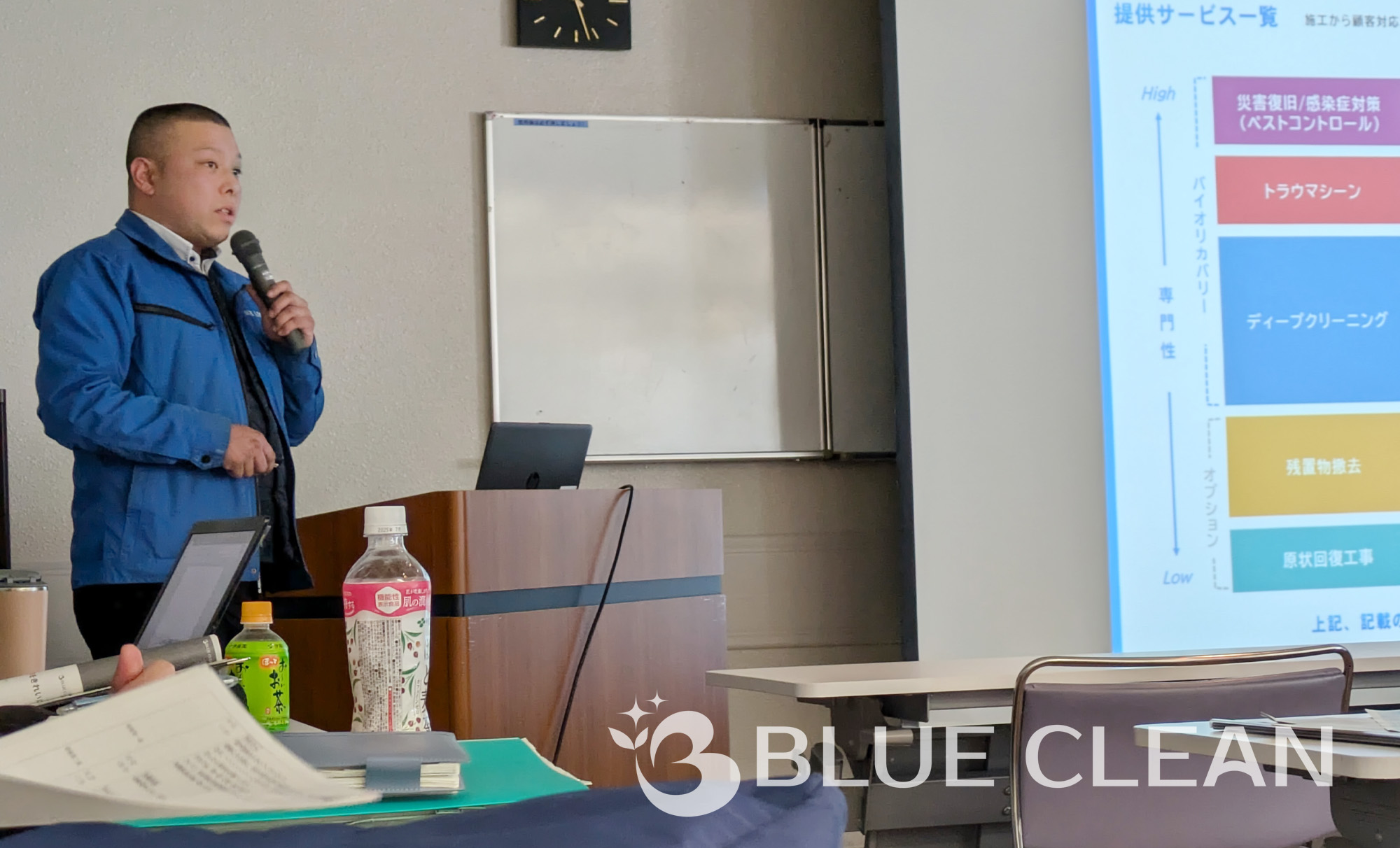 バイオリカバリー™を基盤とした高度清掃ソリューションを提供するブルークリーン株式会社(本社:東京都大田区、代表取締役:藤田隆次)は、2025年1月31日に横浜市栄区福祉保健課主催の「令和6年度 栄区いわゆる『ごみ屋敷』対策研修会」 に登壇し、自治体職員等向けに「寄り添い支援」を軸としたごみ屋敷問題の解決策を提言しました。