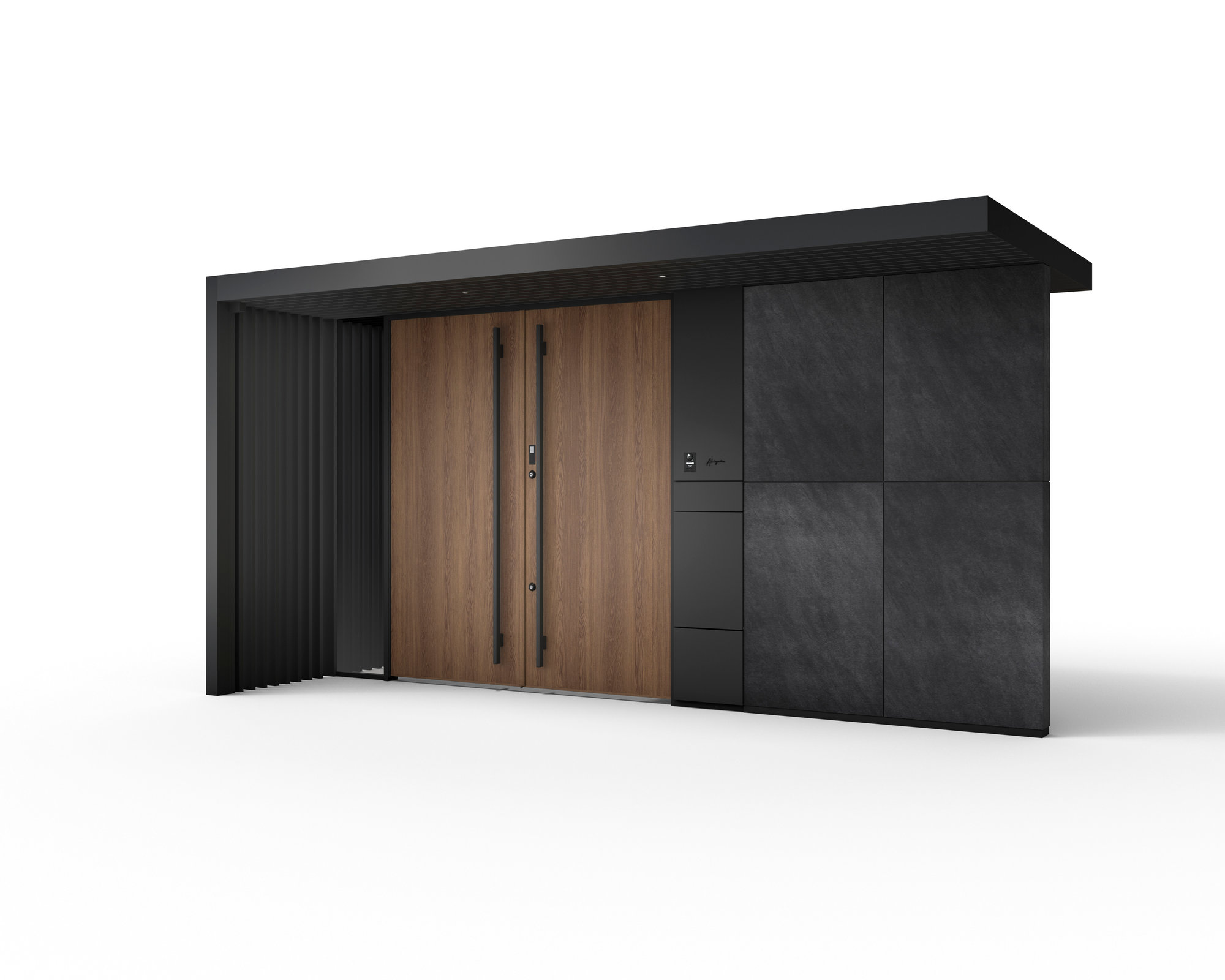 あわせて、高級住宅向けにプライバシーやセキュリティの確保を重視した高さ2,450㎜の「プラスG エントランス 開き門扉AH」を発売します。門扉、袖パネル、納まりを組み合わせることで、門構えにオリジナリティを演出できます。今回発売の「開き門扉AX」「プラスG エントランス 開き門扉AH」は共に、「FamiLock」へ対応しております。