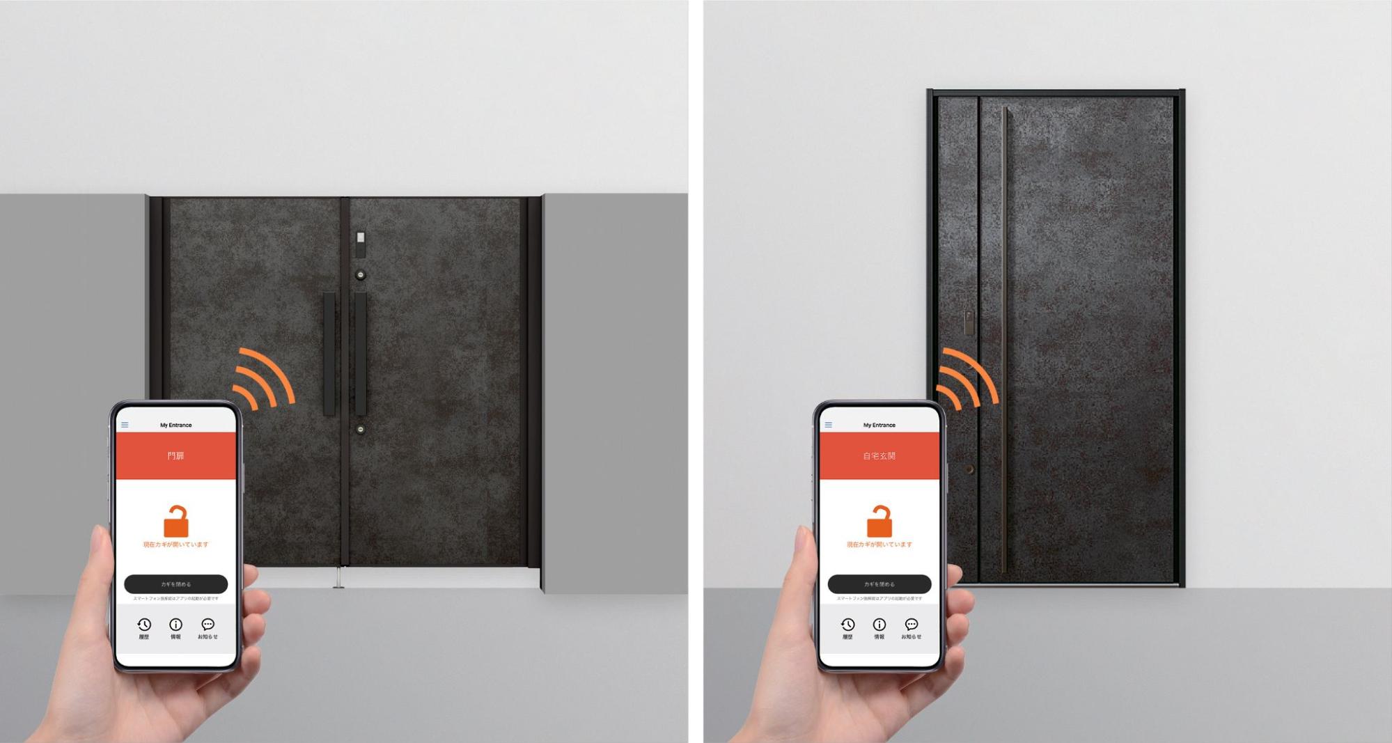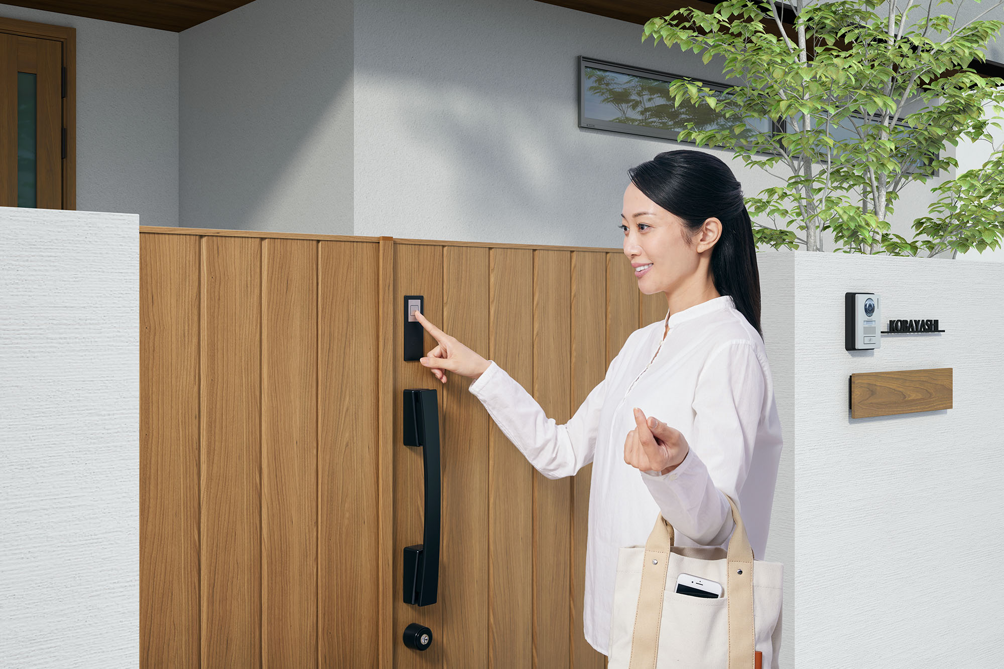 カギを出さずにボタンを押すだけで素早く解錠、門扉が締まると自動で施錠するので、カギの締め忘れる心配がなくなります。「FamiLock」搭載の玄関ドアと連携させれば、たくさんのカギを持ち歩く必要もありません。
