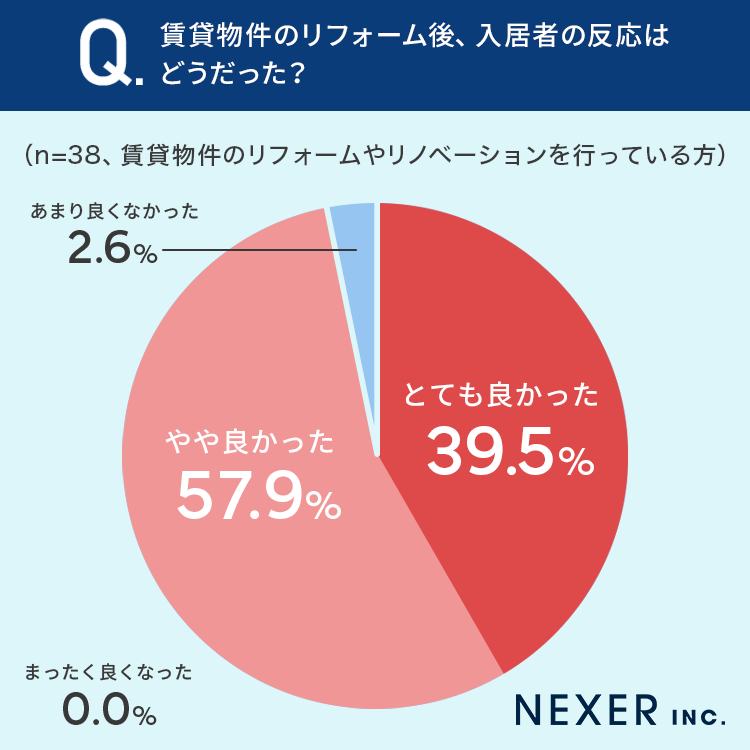 ■97.4%が賃貸物件のリフォーム後、入居者の反応が「良かった」