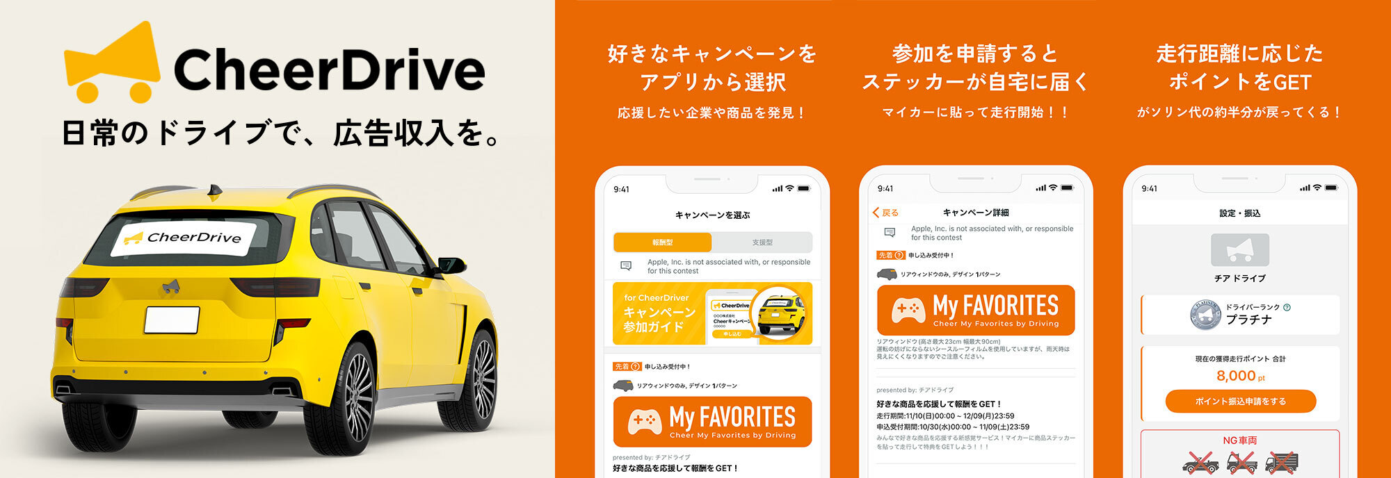 株式会社チアドライブ(本社:東京都中央区、代表取締役社⻑:保科昌孝、 http://cheerdrive.jp/ )が運営する、⼀般ドライバーが愛⾞に好きなブランドやコンテンツのステッカーを貼って⾛⾏することでお礼として⾛⾏距離に応じたスポンサー収⼊が得られるマイカー広告サービス「CheerDrive(チアドライブ)」は、『我が家の安全・安心・快適をお届けー川越設計マイカー広告キャンペーン』の受付を2025年2月25日(火)より開始します。