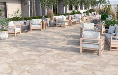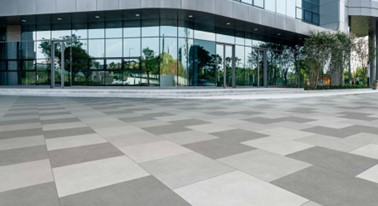 近年、非住宅では大形の床タイルが定着してきているほか、戸建て住宅でも、床タイルの大形化がトレンドとなっています。さらに、子育て世代を中心にタイルでテラスをつくるケースが増えています。
