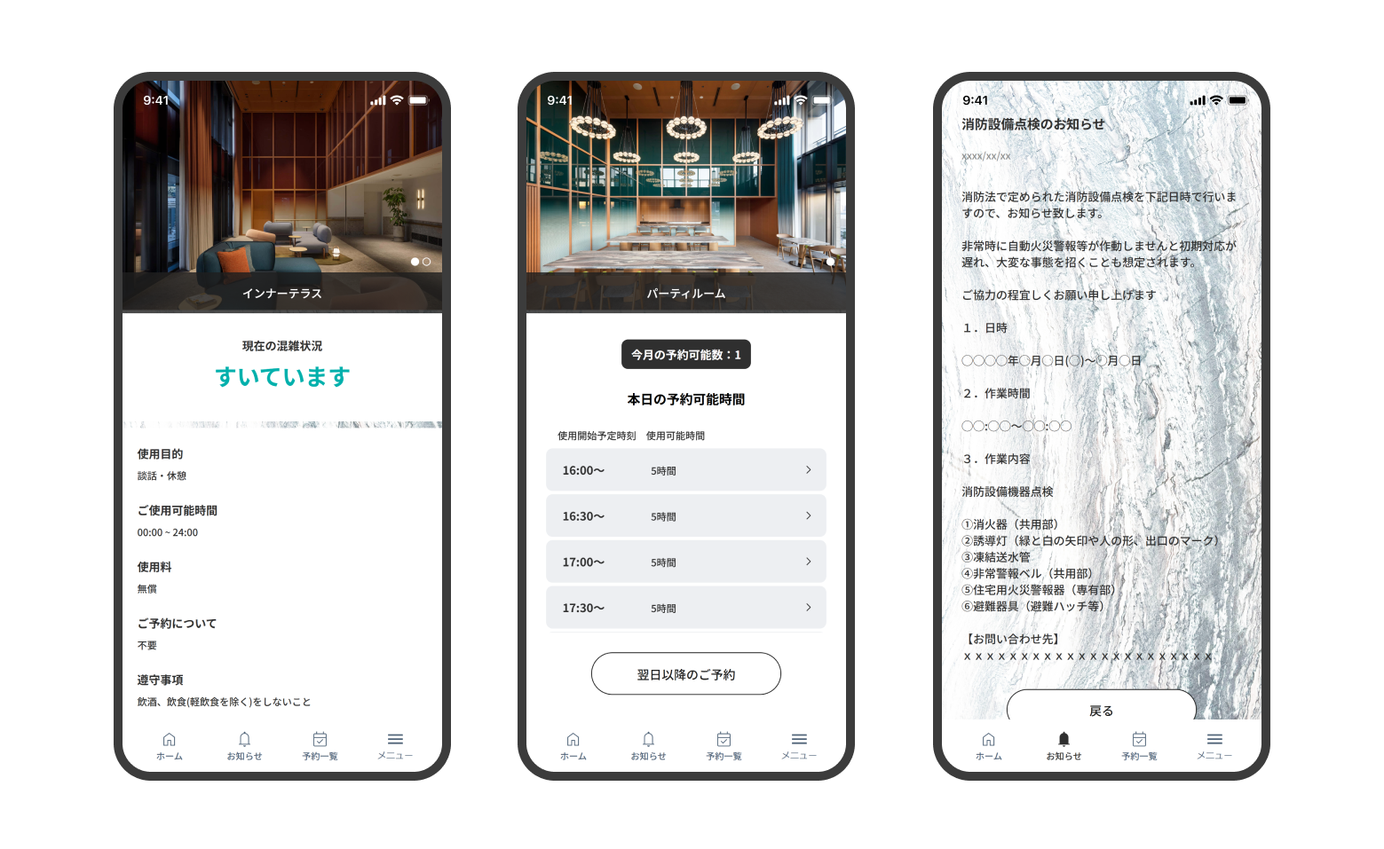 さらに、予約が必要な共用施設においても、従来はコンシェルジュへの口頭や紙面での申請が必要であり、入居者にとって予約手続きや予約状況の確認が行いづらい状況にありました。