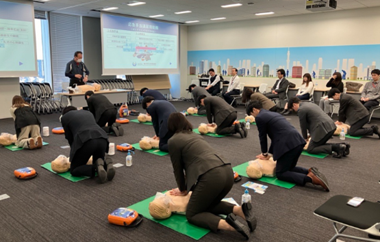 今回の講習では、心肺蘇生法やAEDの使い方など、非常時に必要な応急手当ての知識を身に着けるための講習を行いました。