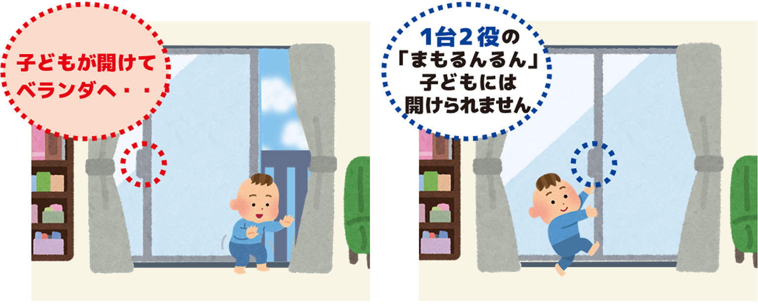 窓の安心安全はサッシ錠+補助錠の1台2役「まもるんるんⓇ」が担います!