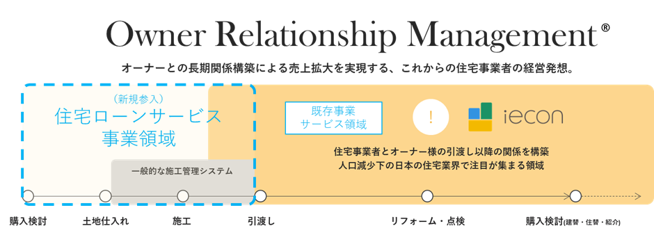 CoLife は「デジタル化が進みづらい住宅に関するあらゆる不便の解消」を目指し、住宅の新築時から引渡し、その後の維持管理、さらには住みかえといった住宅事業者と住宅オーナーの信頼ある良質な関係づくりを進める「iecon ORM(Owner Relationship Management)®︎」の発想で事業を展開。 住宅事業者と住宅オーナーの接点となる「住まいの OS」である「iecon」と、接点をいかして住宅事業者の売上拡大を支援する「ホームサービス」を提供しています。 それにより、住宅の新築時から引渡し、その後の維持管理、さらには住みかえといった住宅事業者と住宅オーナーの信頼ある