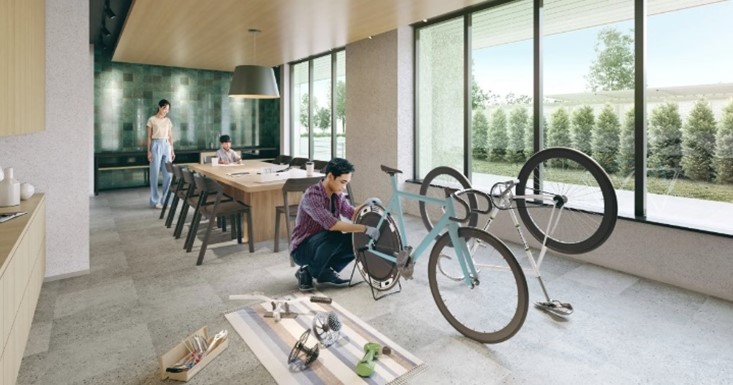 居住者同士のコミュニティ形成に寄与するラウンジを3か所に設置するほか、アウトドア用品のメンテナンスやアートワークなど創造的な活動ができるメンテクラフトルーム、ペットと人が快適に暮らせるようにブラッシング等を行えるグルーミングルーム、業務用のドラム式洗濯機を設置しマンション外に出ずに布団などの洗濯乾燥が可能なランドリールーム等を取り揃えています。