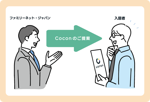 FNJは、無料インターネットサービス「iのぞみネット」を利用する集合住宅の入居者に対し、UMEが提供するホームセキュリティサービス「Cocon」を提案します。また、UMEは「Cocon」を通じて、安全で快適な暮らしをサポートし、集合住宅の付加価値向上を目指します。両社は協力し、賃貸入居者の満足度を高める取り組みを進めてまいります。