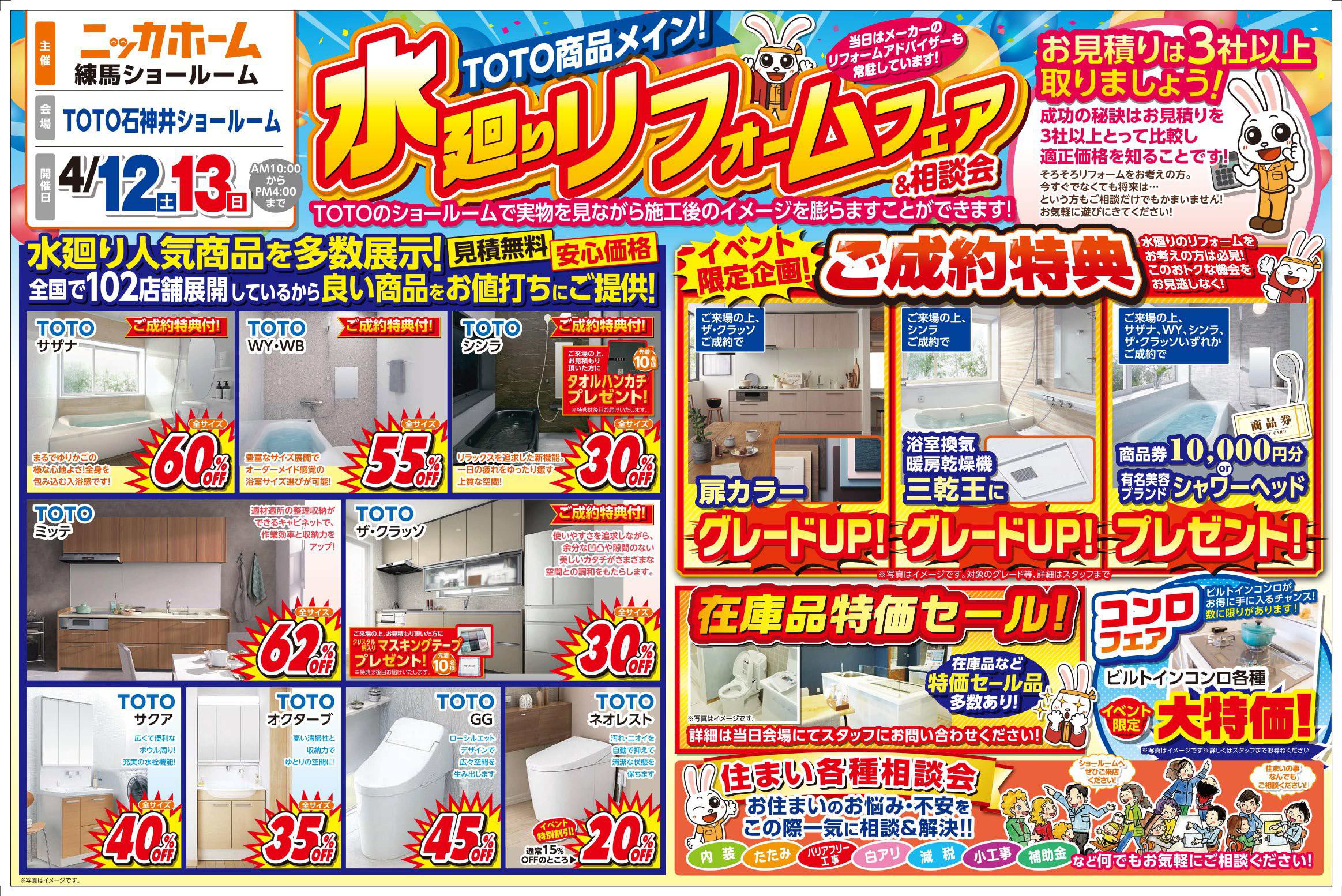 新年度・新生活のスタートは大感謝祭で決まり!地域の皆さまのご愛顧に感謝し特典を盛りだくさん用意しました♪25年4月12日(土)・13日(日)の2日間は、TOTO石神井ショールームでお待ちしております!