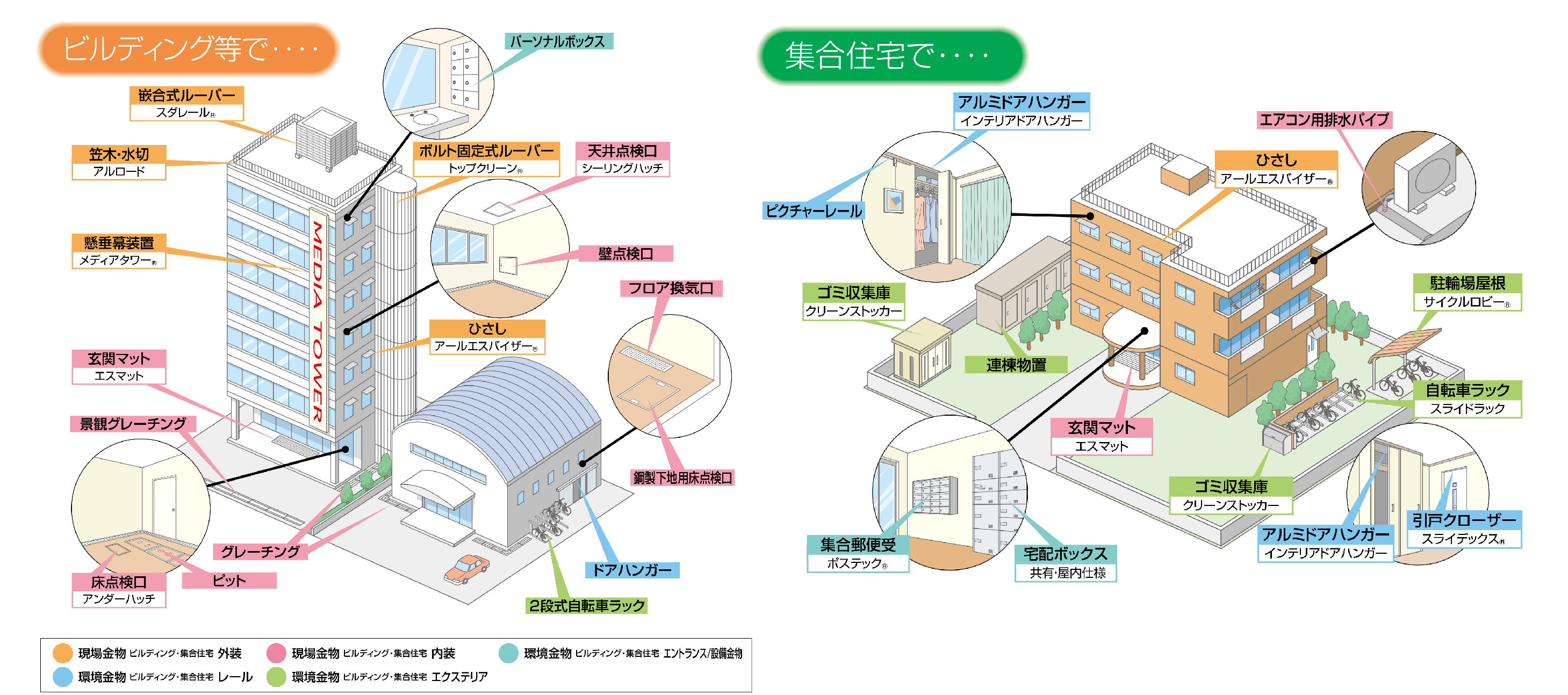 ・事業:建築金物・内外装建材・エクステリア金物等の製造