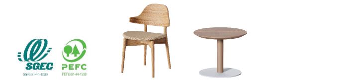 森林・林業の成長産業化や地域振興、資源循環型の社会実現に貢献する FSC® 認証のテーブルを採用しました。