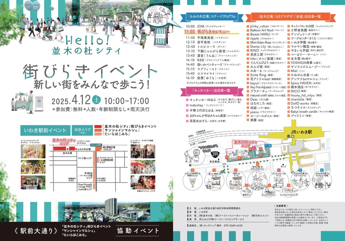 4/12(土)JRいわき駅前再開発『並木の杜シティ』街びらきイベントを共催。参加者約1000名、ステージ・飲食・50の物販・ワークショップで街に賑わい