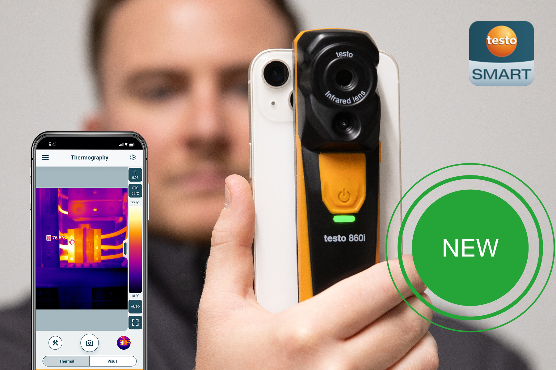 株式会社テストーは、2025年4月15日より、スマートフォン用サーモグラフィ testo 860i セットを発売いたしました。testo 860i は、スマートフォン・タブレットでアプリに接続して簡単に熱画像の撮影や分析、レポート作成が可能です。低価格でありながら高画質のサーモグラフィです。