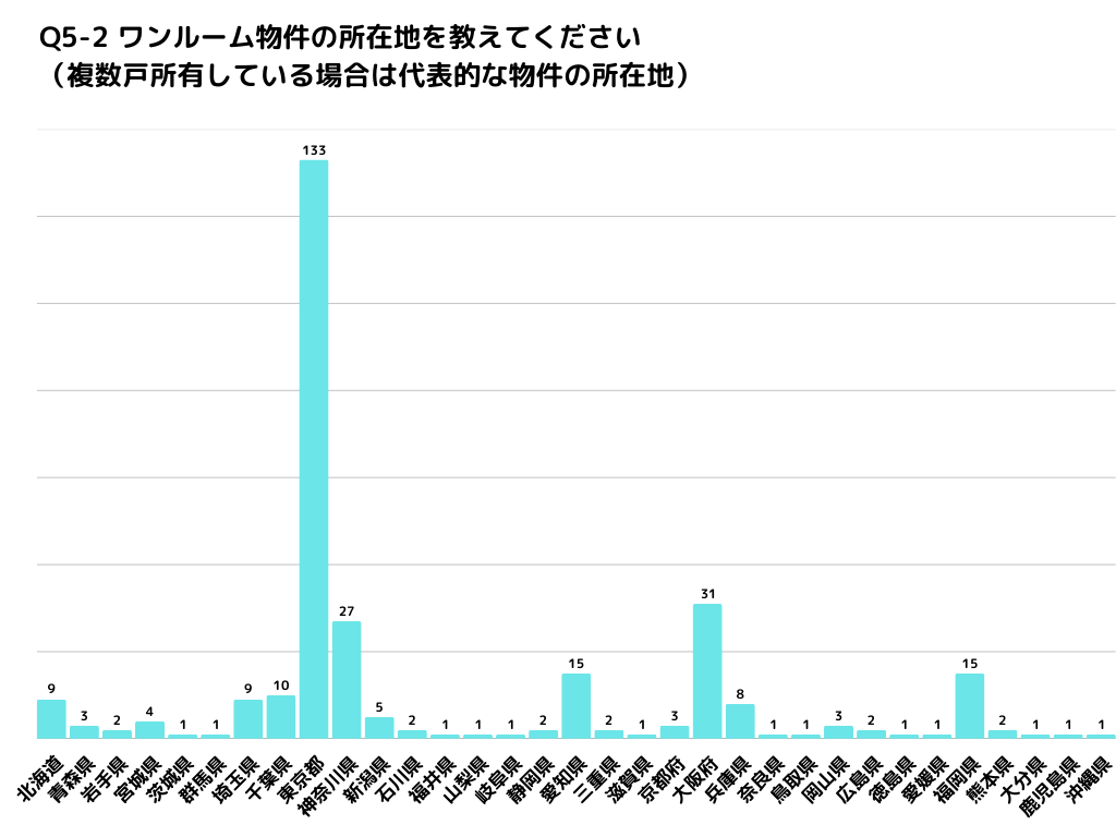 実際、物件所在地のデータを見ると、東京都が44.3%(133人)と圧倒的多数を占め、大阪府(10.3%)、神奈川県(9%)と続くなど、都市部、特に首都圏に物件が集中しています。