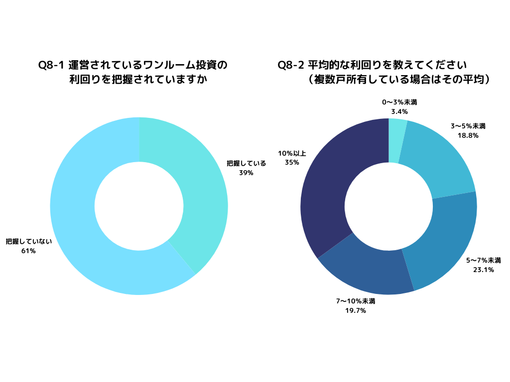 一方、利回りを把握している投資家の中では、「10%以上」の高利回りを実現している人が34.0%と最も多く、成功事例も少なくないことがわかります。