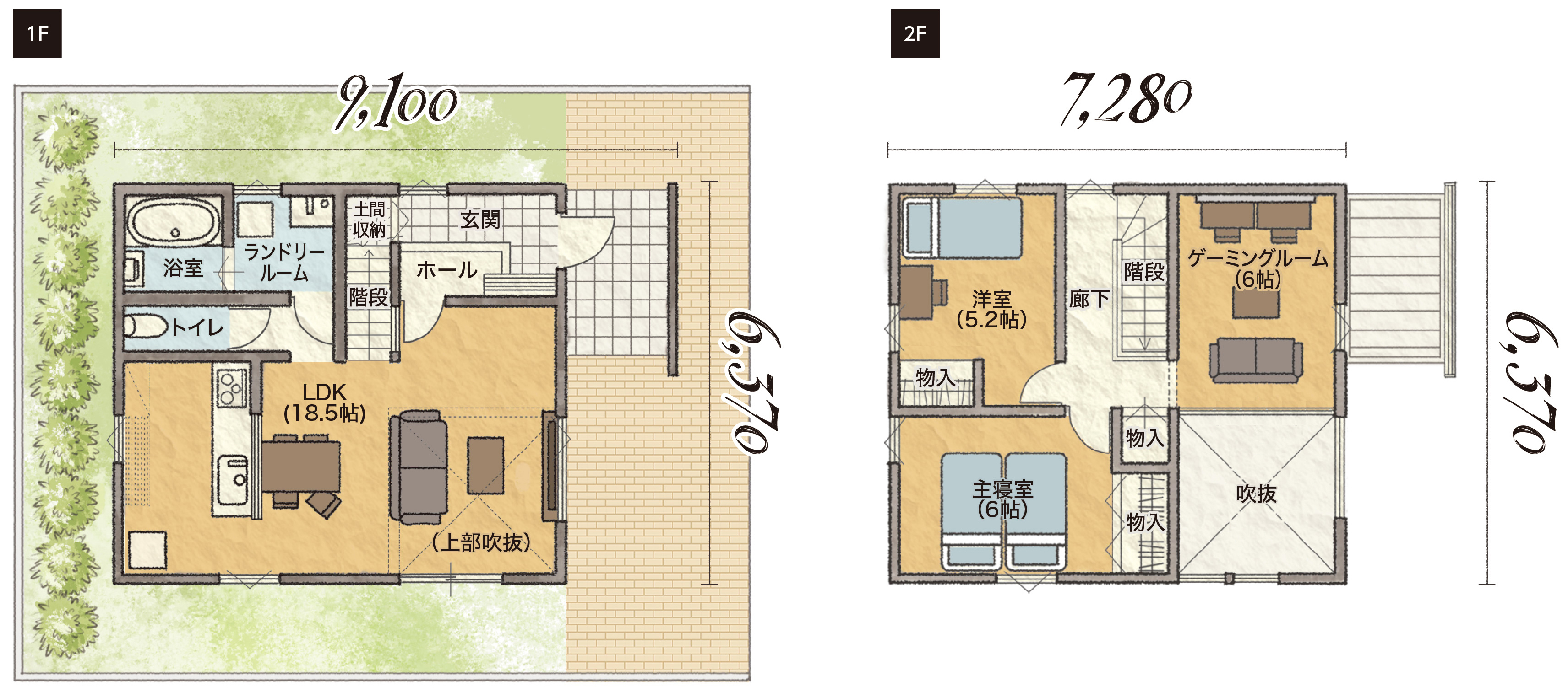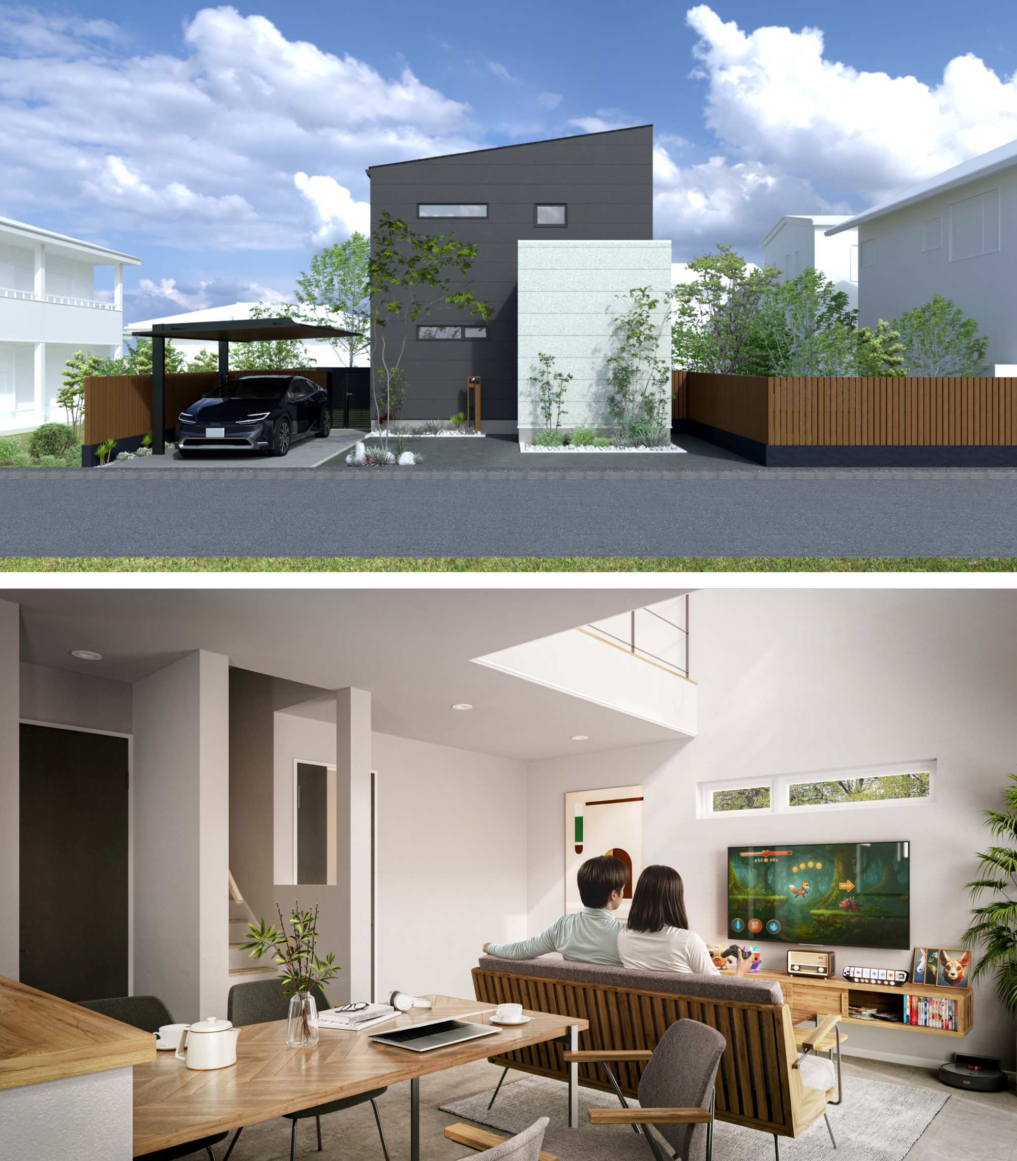 各個室に加え、夫婦で一緒に使える「ゲーミングルーム」となる趣味スペースを設け、まるで「ふたりの秘密基地」のような空間を演出。ゲストを招くシーンも想定し、気軽に人を呼べる間取り設計としながらも、自分たちだけの世界を大切にできるレイアウトが特長です。