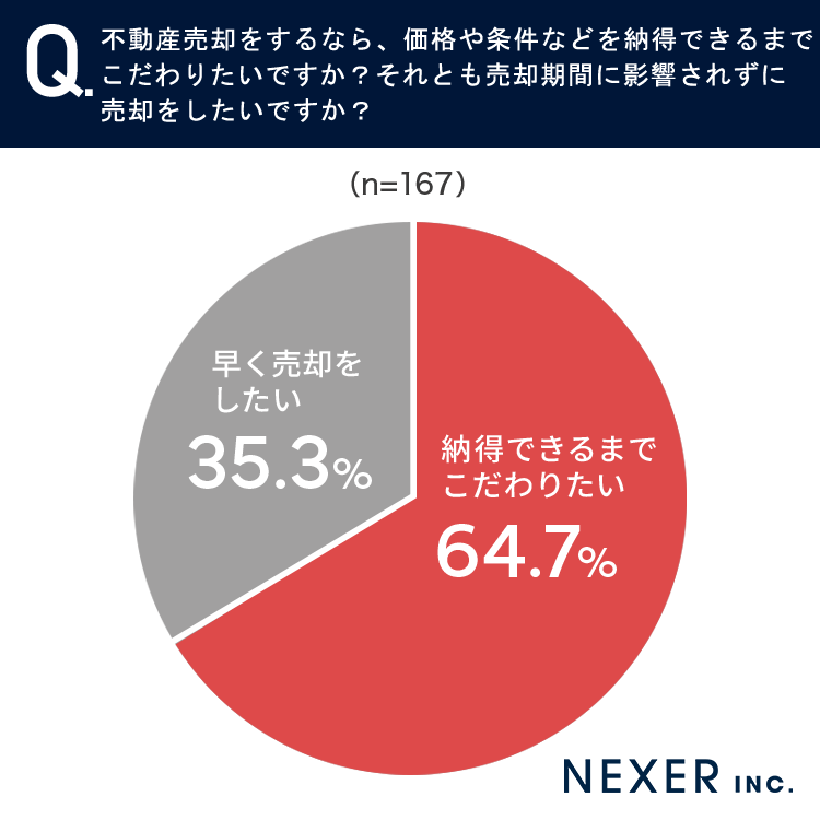 64.7%の方が、早さよりも「納得できるまでこだわって売却したい」と回答しています。
