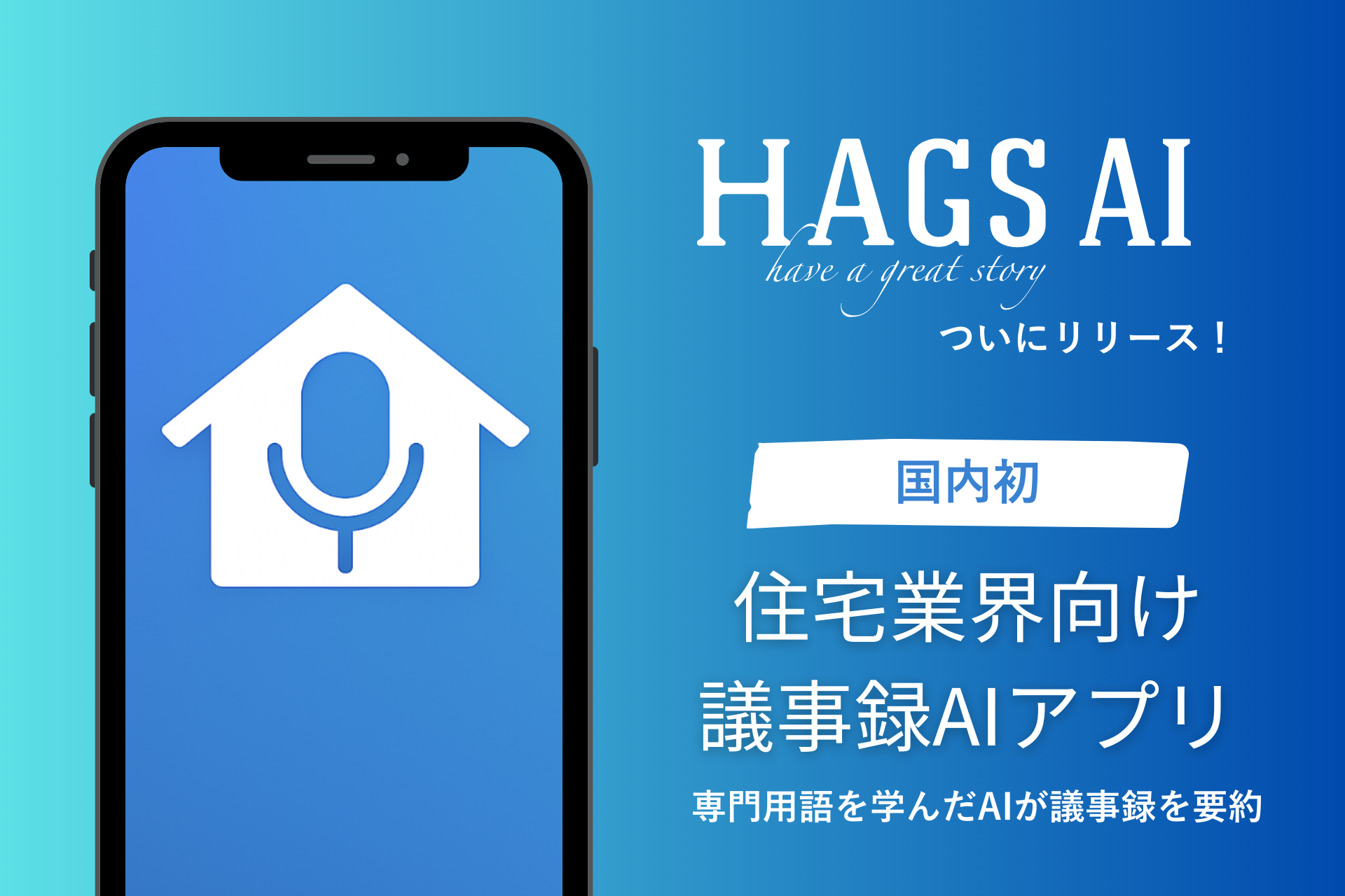 住宅業界向けのAI・DXサービスを展開する株式会社HAGSは、住宅業界向けのAIプラットフォームの第一弾である「HAGS AI議事録」をリリース。現地調査の会議や設計打合せを劇的に効率化します。