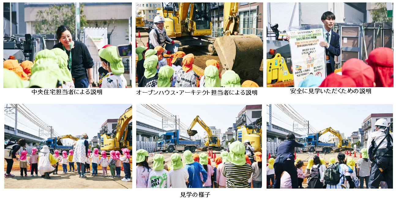 当日は、安全面に最大限配慮し、専用の見学コースを設けると共に、普段は工事現場には絶対に入らないよう、丁寧に説明するなど、子どもたちが楽しみながら、安全の大切さにも触れていただける内容としました。 今後も地域貢献活動の一環として、建設地近隣の保育園・幼稚園等との交流機会を図ってまいりたいと考えています。
