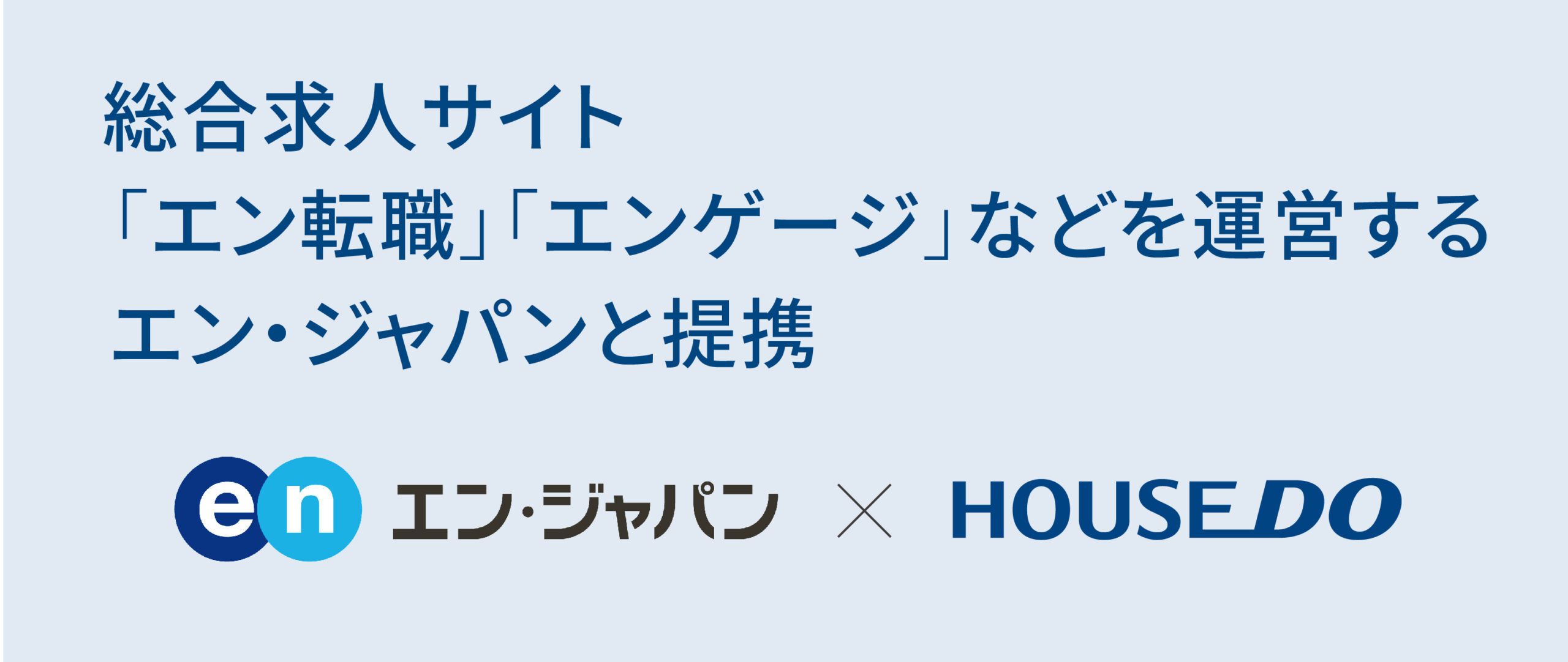 ハウスドゥブランドで不動産事業を全国展開する株式会社And Doホールディングス(本社:東京都千代田区、代表取締役会長 CEO:安藤正弘)の連結子会社である株式会社ハウスドゥ住宅販売(本社:東京都千代田区、代表取締役社長:冨永正英)は、エン・ジャパン株式会社(本社:東京都新宿区、代表取締役会長兼社長:越智通勝)と、ハウスドゥ加盟店への人材採用の支援を目的として、求人/求職メディアの提供に関して、業務提携契約を締結いたしましたのでお知らせいたします。