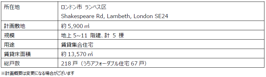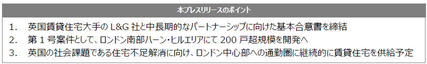 ~ 住宅不足が社会課題となるロンドン市内で、今後継続的に高品質な賃貸住宅を開発 ~