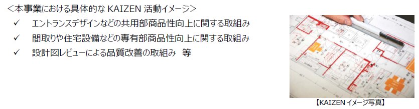当社は日本国内での知見を海外での不動産開発にも活かし、商品企画、施工管理、販売等の各過程で、課題を分析し、改善を加えていく一連のプロセス「KAIZEN 活動」を行っています。これまでは東南アジア諸国での住宅分譲事業を中心に当活動を行ってまいりましたが、今般、英国での本事業においても同様の活動を実施予定です。英国における住宅の供給不足や建物の老朽化などの様々な課題に対して、量と質の両面で当社の知見が貢献できることをL&G社からは期待され、今般の基本合意に至りました。お住まいの方がより心地よく快適に過ごすことができる住まいづくりにこだわり、L&G 社と当社の強みを活かした事業推進により、高品質な賃貸住宅を提供してまいります。