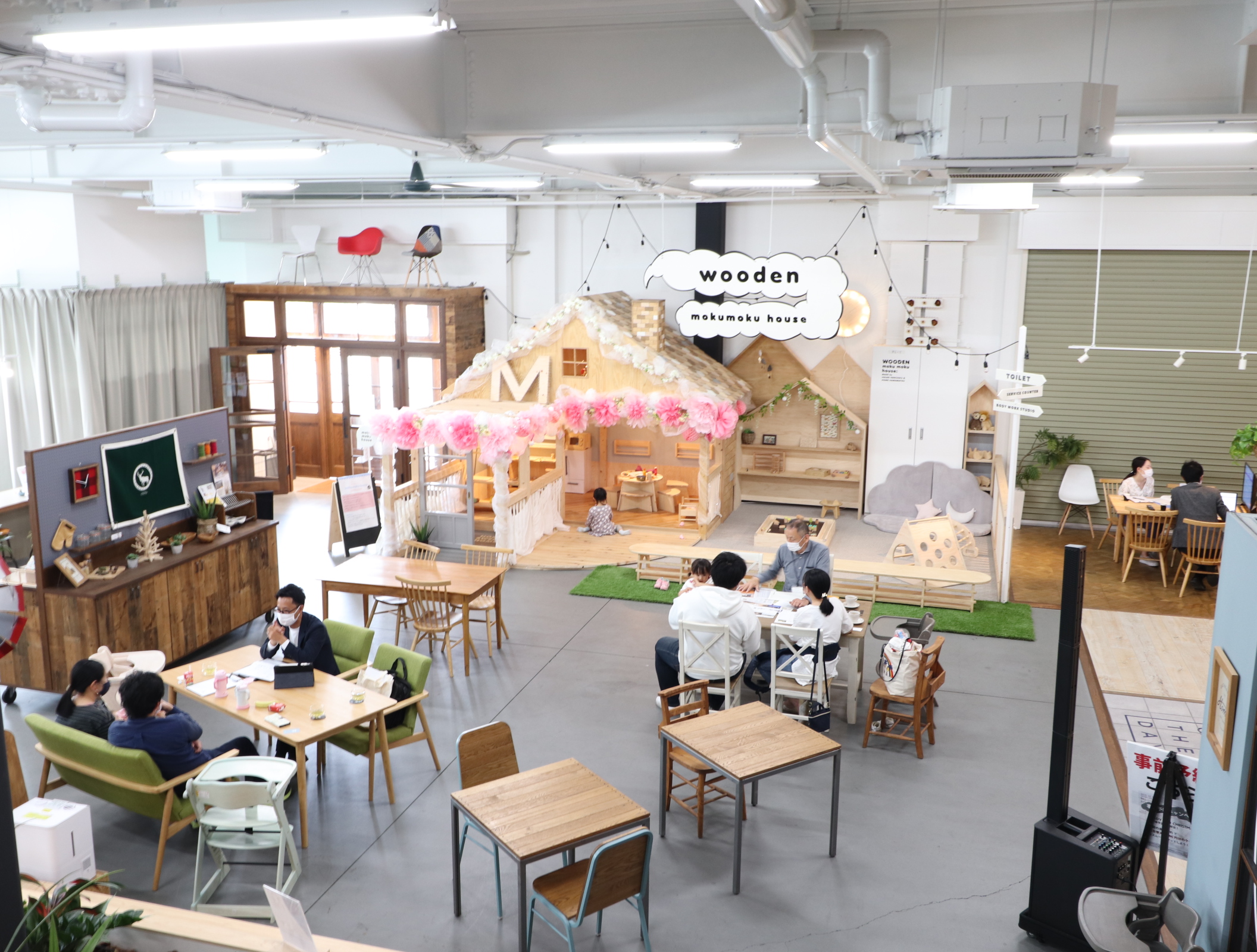 株式会社鈴三材木店が運営する、Home HAMAMATSUでは、「親子であそぶ・つくる・学ぶ」をコンセプトに、キッズスペースの他にも延べ床面積400平方メートルほどの広い店内を利用し、家族で楽しめる様々なワークショップや離乳食教室などの育児レッスンを開催。ファミリー層を中心に月100組程度が訪れ、子育て中のママたちの憩いの場となっています。